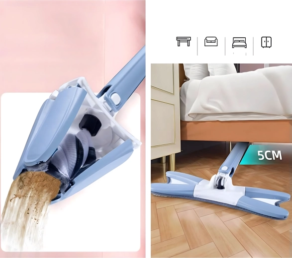 Vďaka skladacej X konštrukcii sa mop ľahko dostane do rohov, pod nízky nábytok a okolo nôh stolov. Ľahká, ergonomická a výškovo nastaviteľná tyč zaručuje pohodlné používanie bez zbytočného ohýbania chrbta. V balení nájdete aj náhradný mikrovláknový návlek pre dlhšiu životnosť a hygienické upratovanie.