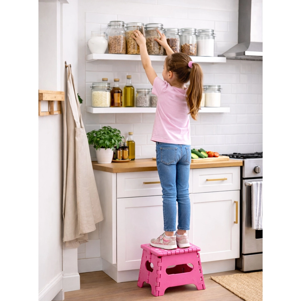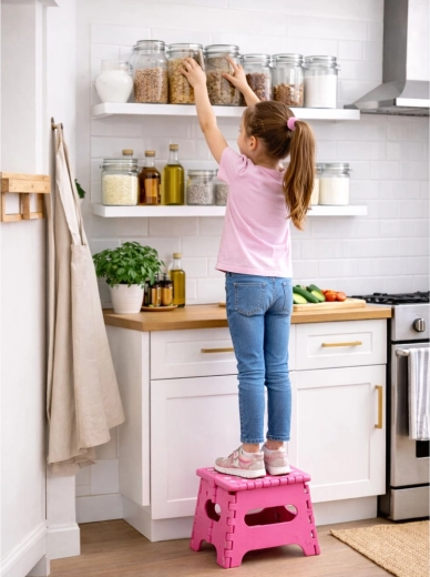 Ideálne pre deti pri umývadle, na ľahké dosiahnutie na vyššie police v kuchyni či šatni, ako pomocné sedenie alebo praktický doplnok na kempovanie a cestovanie. Minimalistický dizajn a kompaktné rozmery sa hodia do každého interiéru.