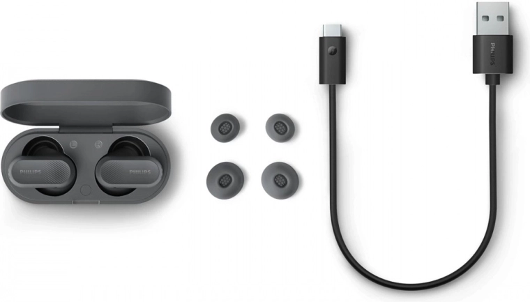 slúchadlá, nabíjacie puzdro, náhradné špunty (rôzne veľkosti), kábel USB‑A na USB‑C
