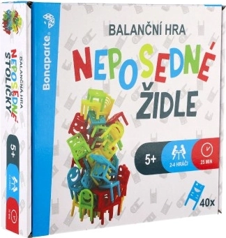 Neposedné stoličky sú skvelou balančnou spoločenskou hrou pre deti od 5 rokov, ktorá ponúka rôzne herné varianty. Hra obsahuje 32 plastových stoličiek a 8 stolčekov pre viac herných možností. Hranie len s jednou rukou alebo tvorba vlastných pravidiel prináša ďalšie výzvy a zábavu:
