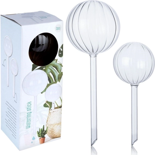 Udržujte svoje izbové rastliny vždy správne zavlažené s dvojicou elegantných sklenených gulí. Tieto samozavlažovacie baňky postupne uvoľňujú vodu priamo ku koreňom, takže sa o zálievku nemusíte starať ani počas dovolenky. Praktické riešenie pre zaneprázdnených pestovateľov, transparentné sklo na jednoduchú kontrolu hladiny vody a ľahké použitie bez zložitej inštalácie.