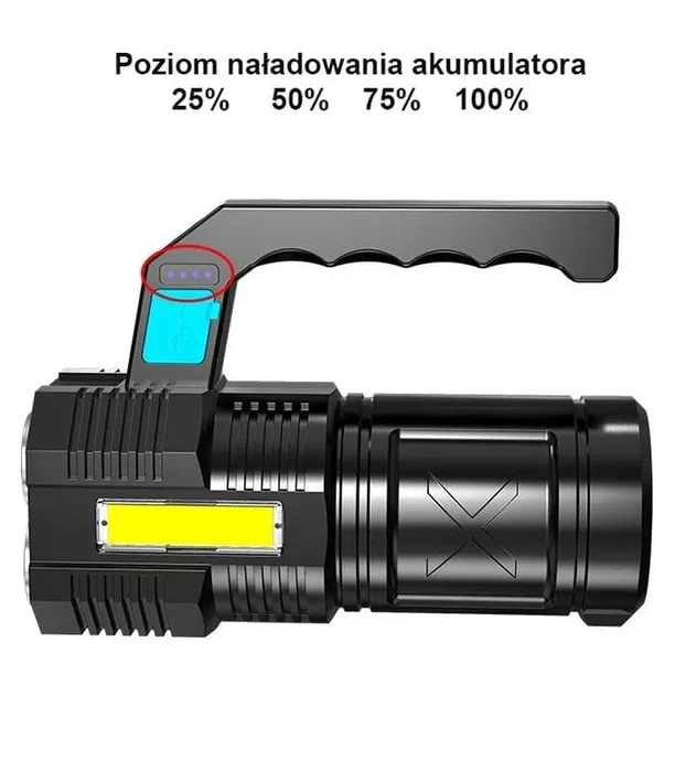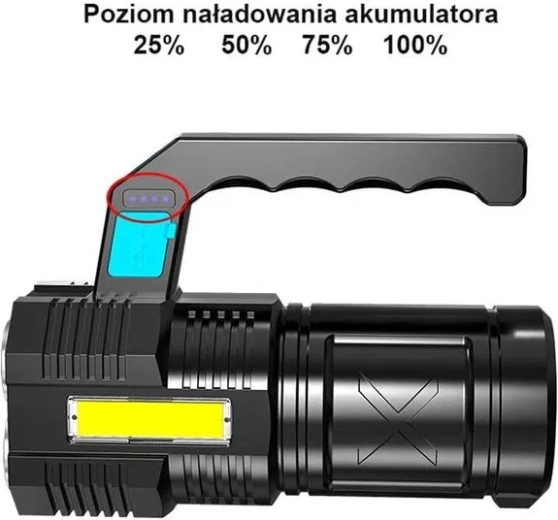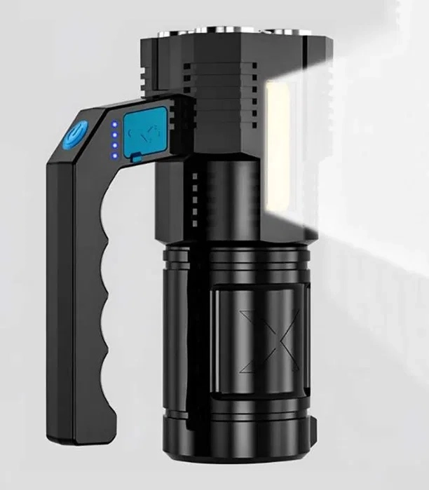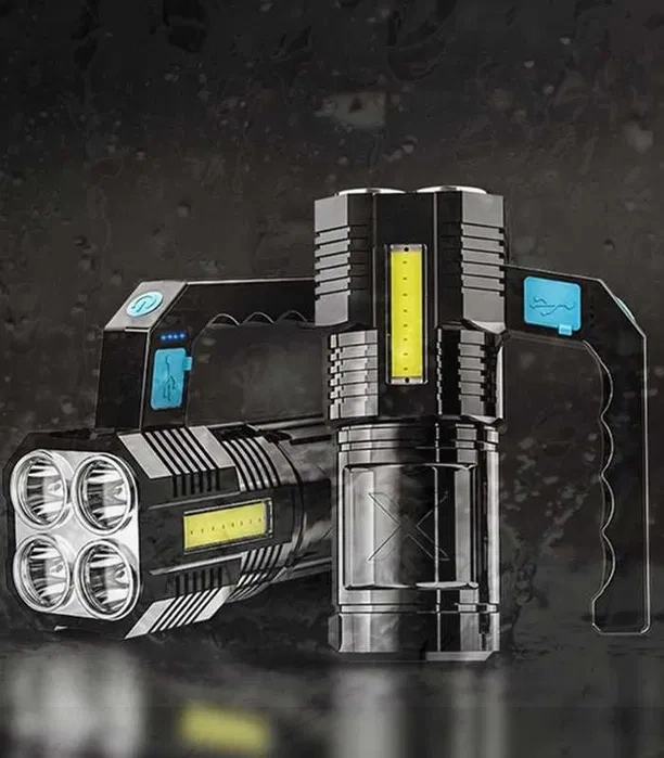 Táto odolná, vodeodolná LED baterka kombinuje silný hlavný kužeľ svetla so štyrmi T6 LED a praktické bočné COB pracovné svetlo pre rozptýlené osvetlenie bez oslnenia. Pohodlne sa nabíja cez USB a kvalitný akumulátor 18650 zaistí spoľahlivú prevádzku doma, v aute aj pri outdoorových aktivitách.