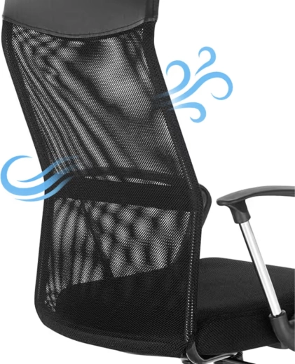 Vysoké sieťované operadlo sa prispôsobí chrbtu, zlepšuje ventiláciu a obmedzuje prehrievanie pri dlhom sedení.