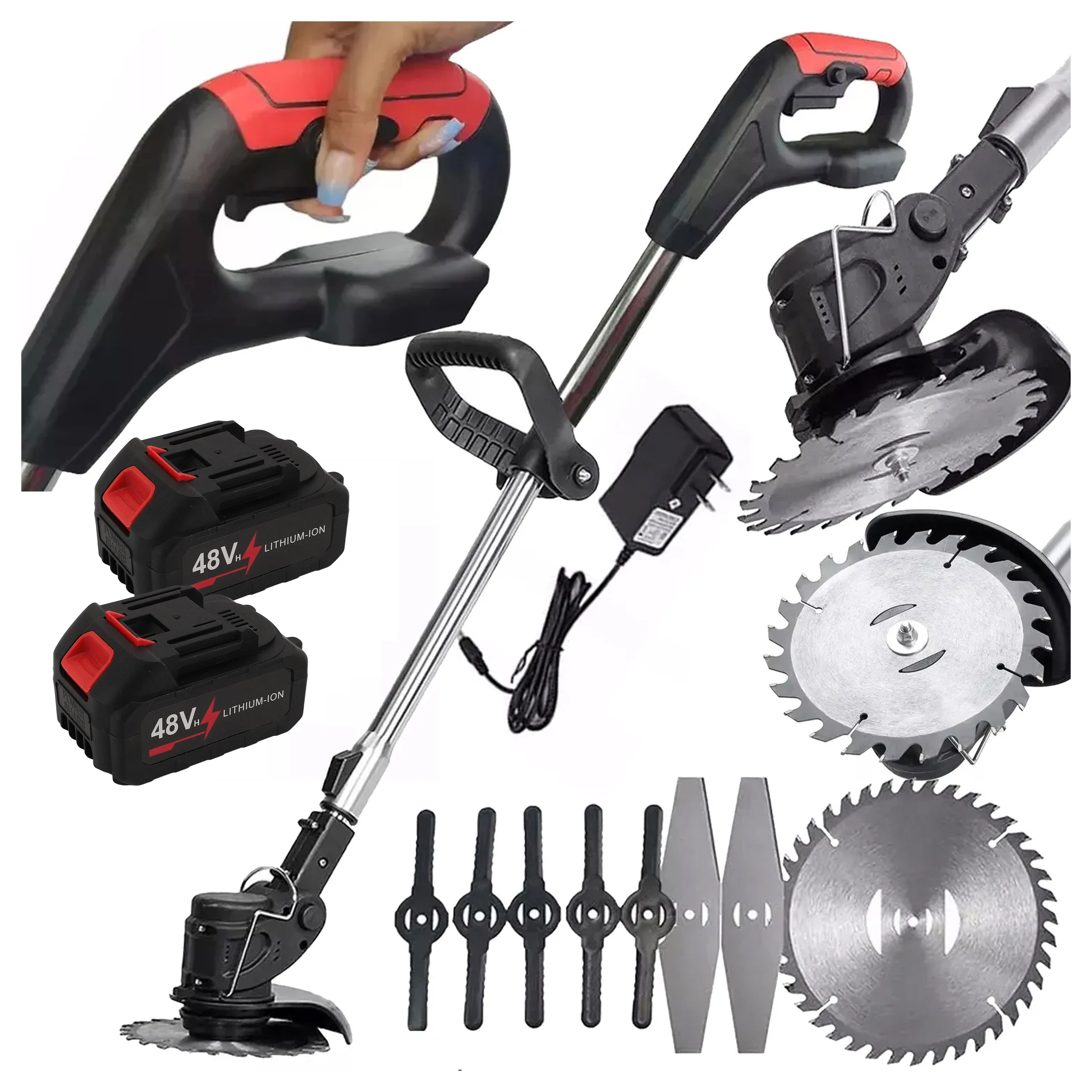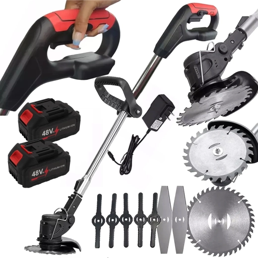 Stroj je dodávaný s 2× Li‑Ion 48 V batériami a nabíjačkou, takže môžete pracovať dlhšie bez zbytočných prestávok. Vďaka nastaviteľnému sklonu hlavy a pomocnej rukoväti dosiahnete čisté hrany pozdĺž chodníkov, plotov aj okolo stromov. Robustná konštrukcia a možnosť použitia plastových, kovových aj pilových kotúčov z neho robia všestranného pomocníka pre každú záhradu.