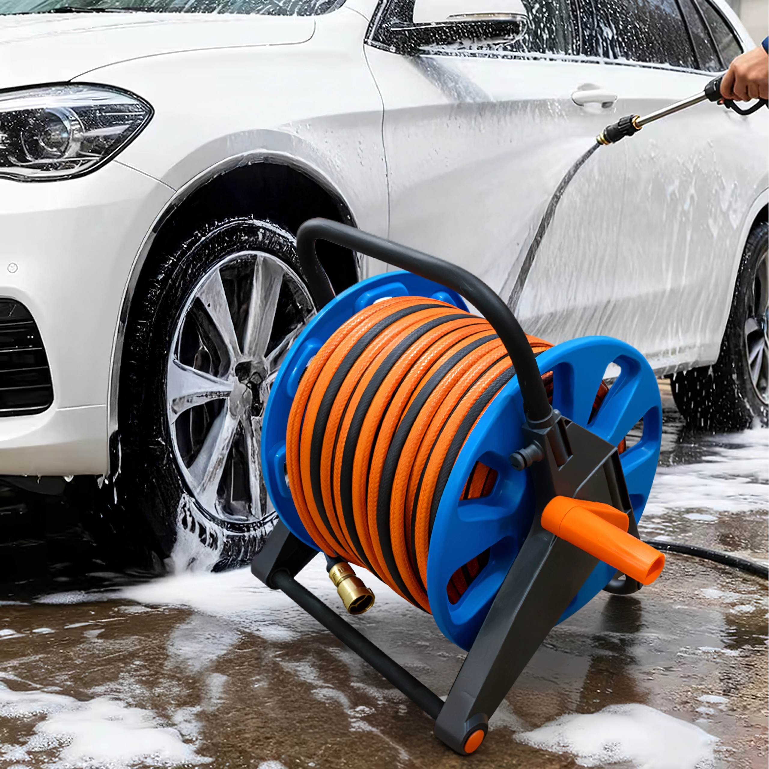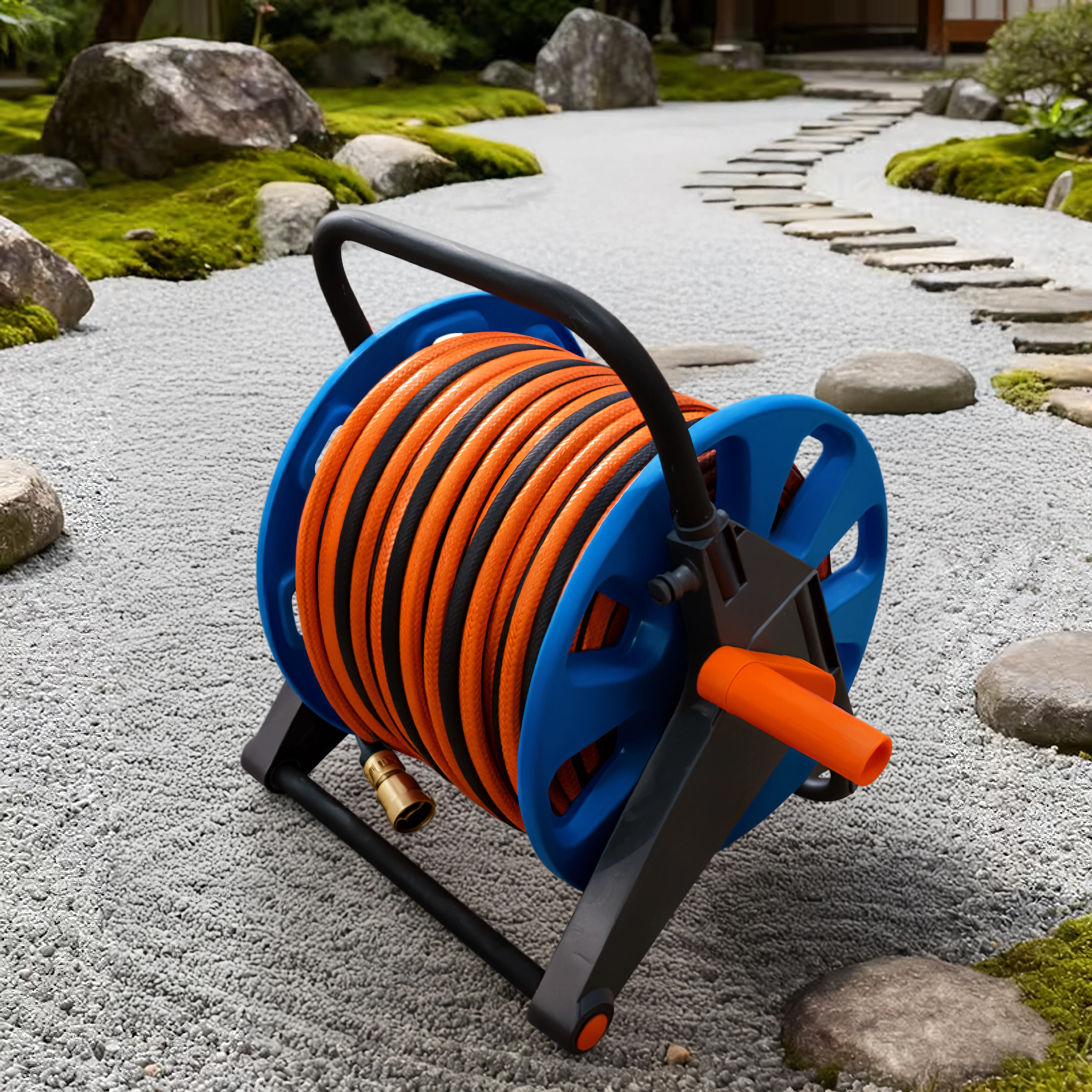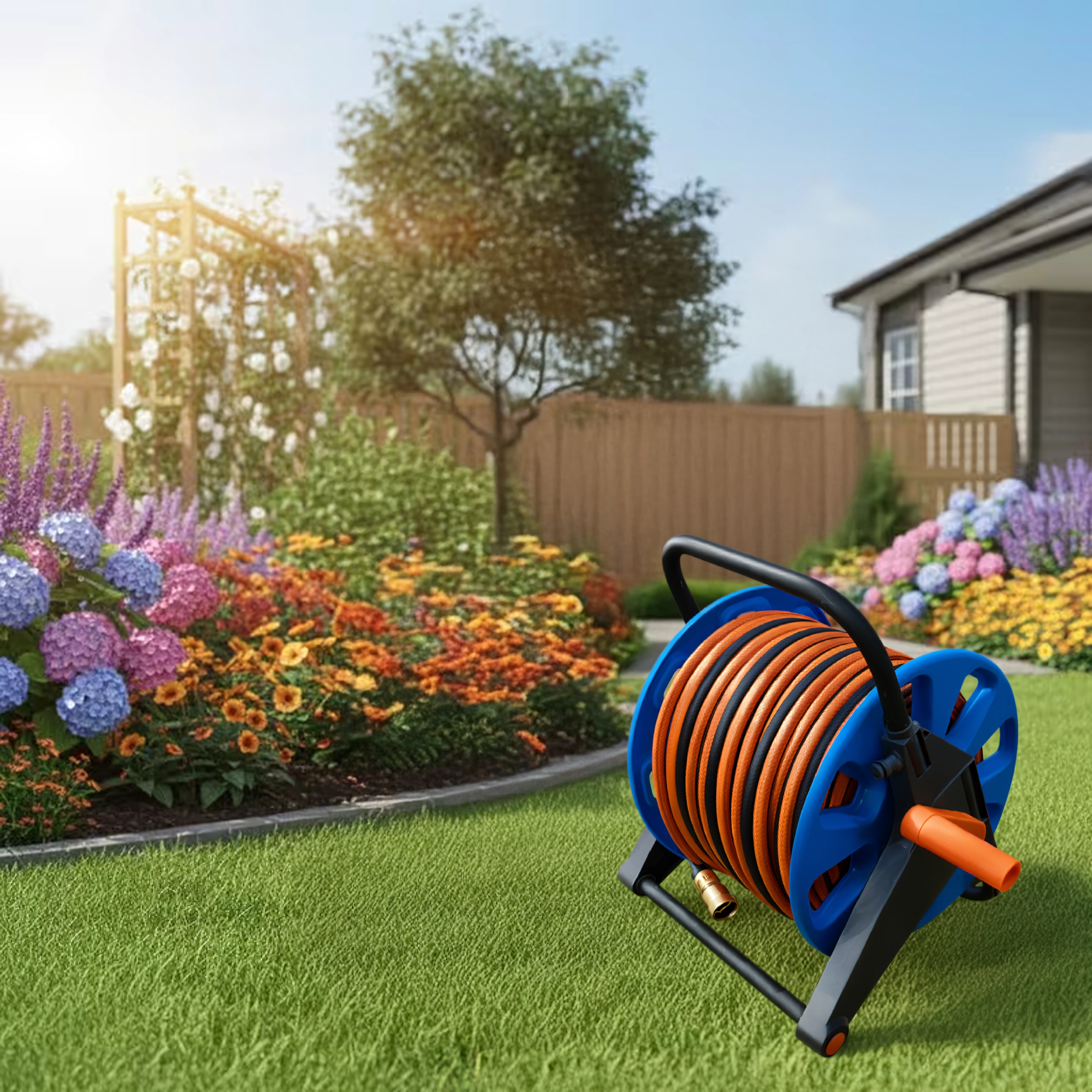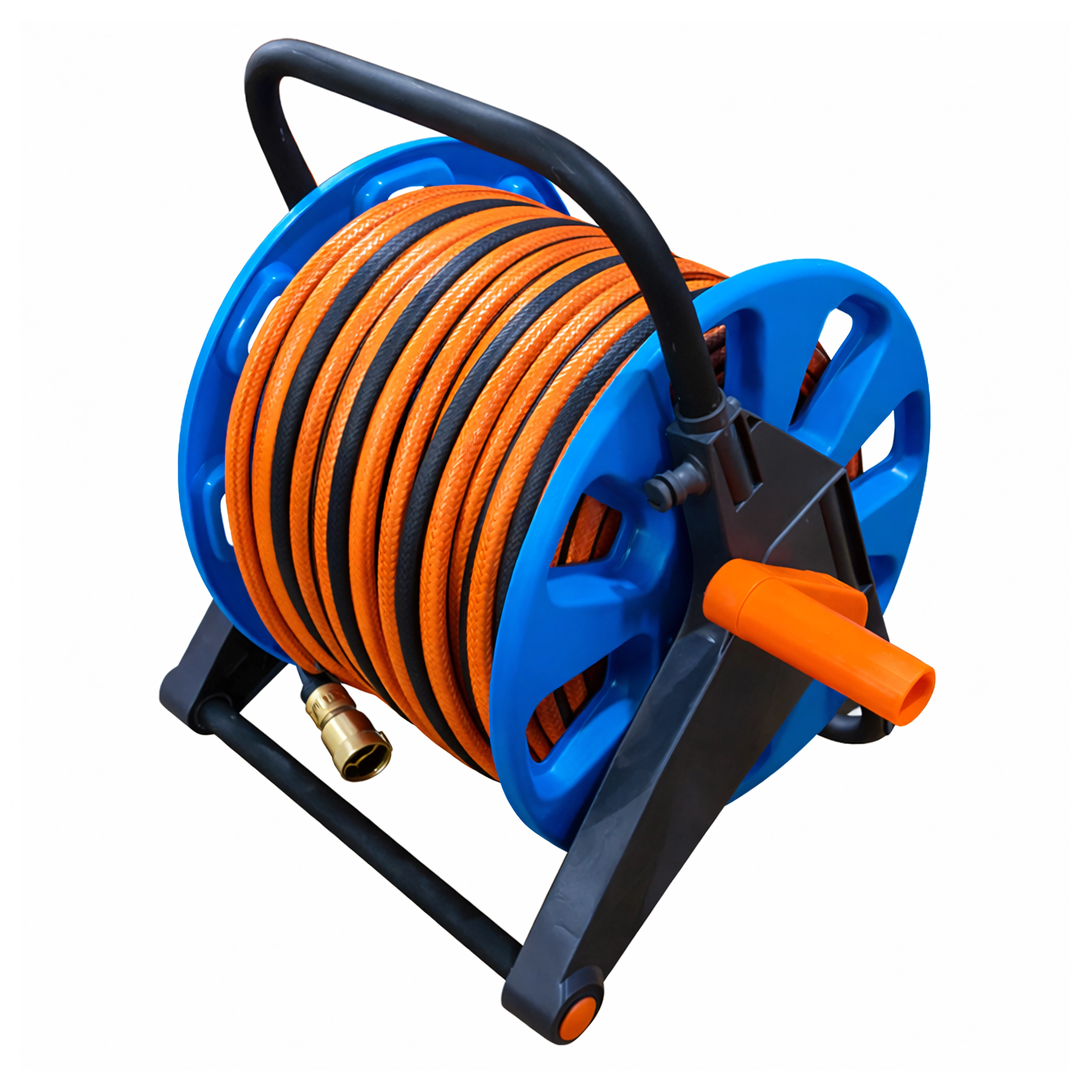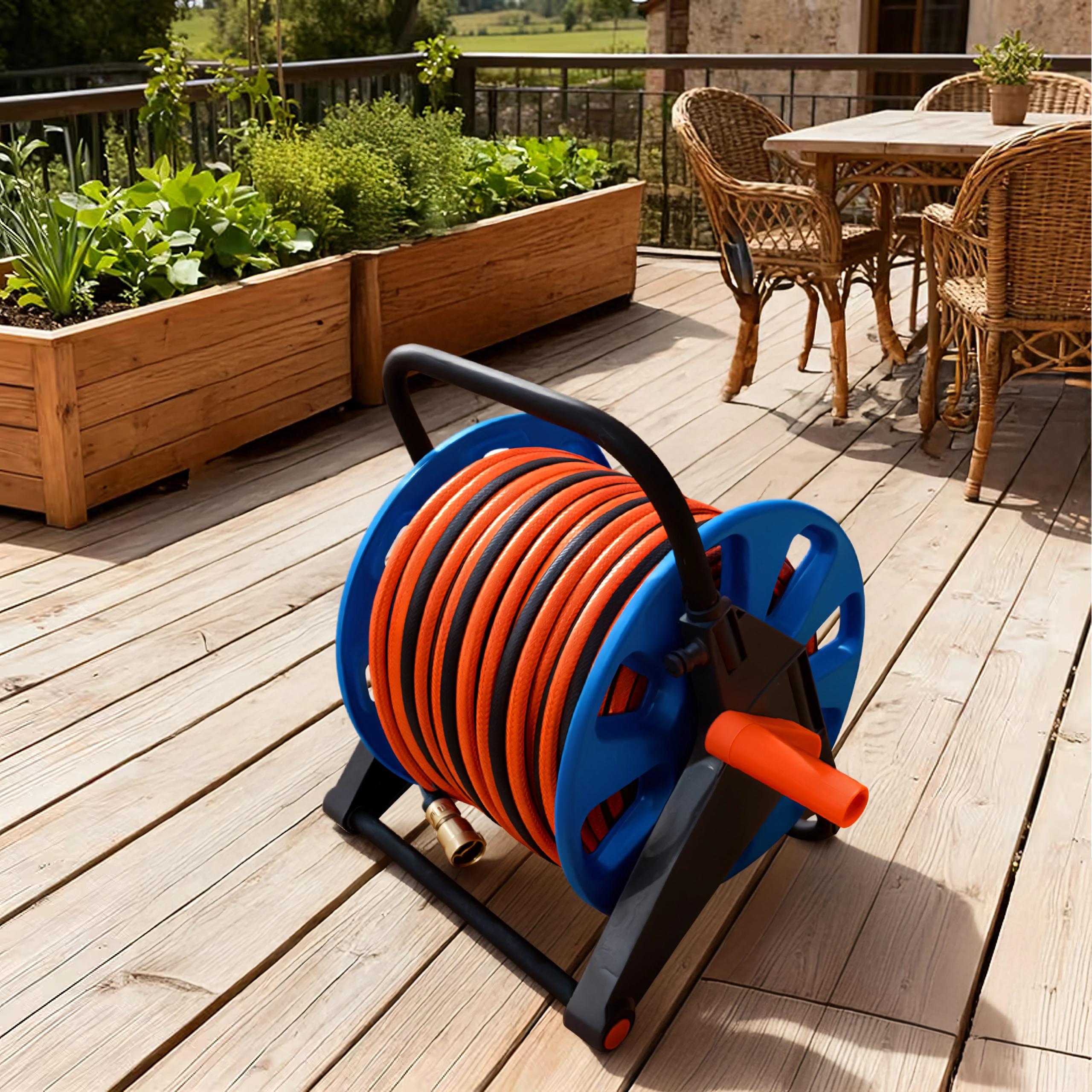 Kapacita až 50–60 metrov štandardnej záhradnej hadice pokryje aj väčšie pozemky. Kompaktné rozmery a nízka hmotnosť uľahčujú prenášanie aj skladovanie v garáži či záhradnom domčeku. Praktická voľba na každodenné použitie v záhrade, na terase aj v dielni.