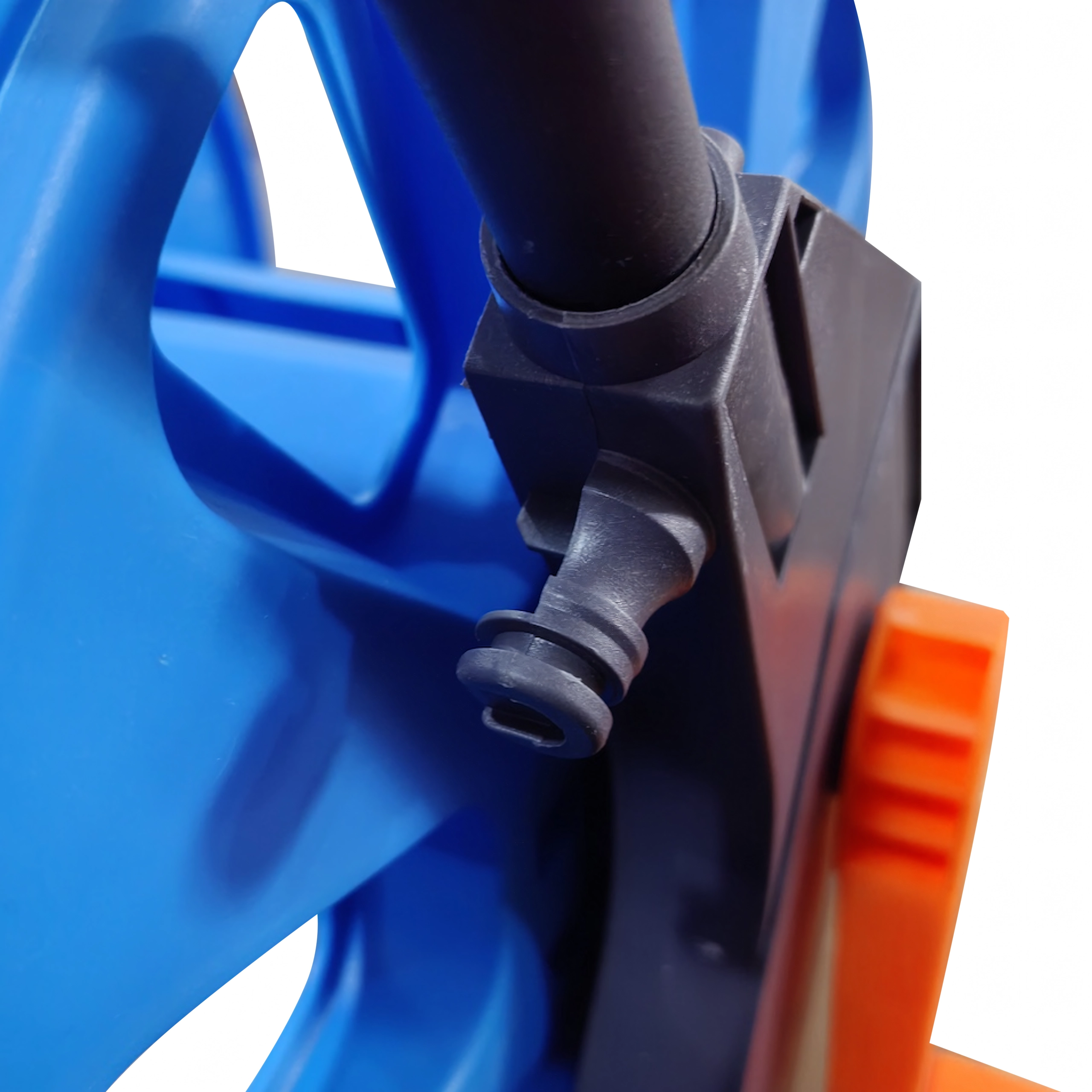 - Jednoduché navíjanie – plynulá ručná kľuka na rýchle stiahnutie hadice.