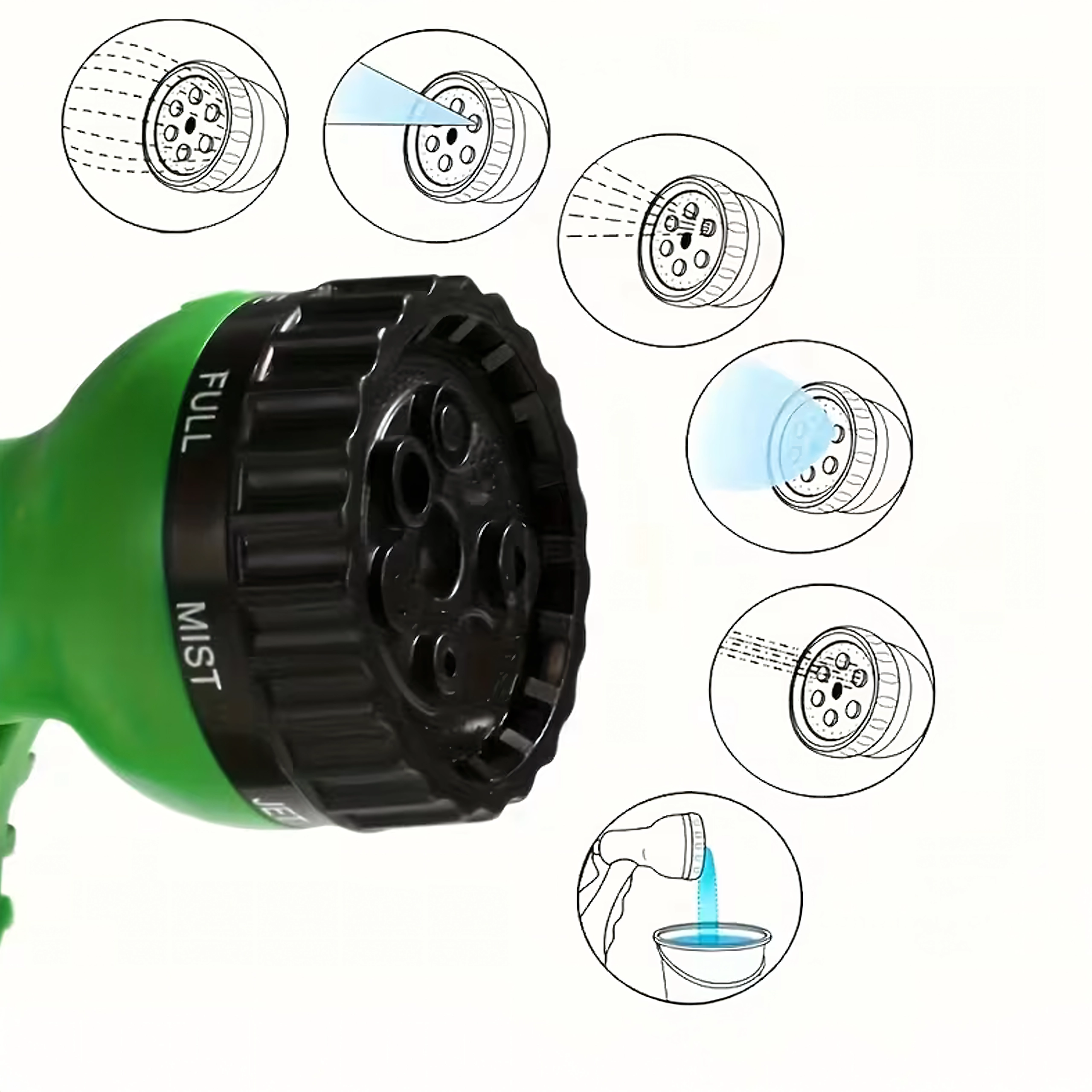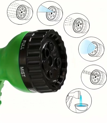 Univerzálna záhradná postrekovacia pištoľ s ergonomickou rukoväťou a otočnou hlavicou ponúka až 6 režimov postreku (Jet, Shower, Mist, Cone, Full a pod.). Vďaka pákovej spúšti a pohodlnému protišmykovému úchopu ľahko nastavíte prietok aj tvar prúdu na polievanie kvetov, trávnika, umývanie auta či upratovanie terasy. Kompatibilná so štandardnou rýchlospojkou pre záhradné hadice.