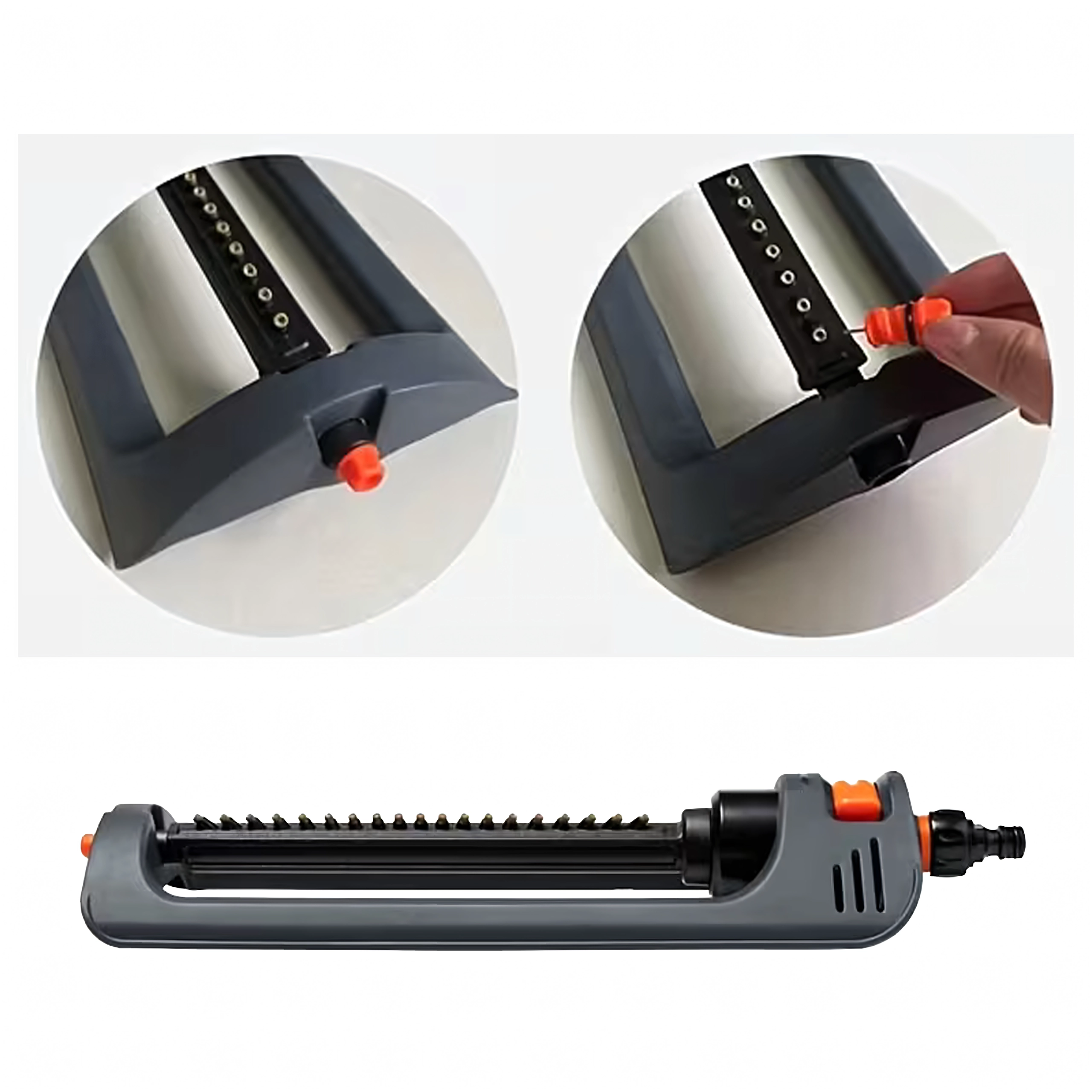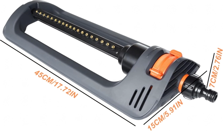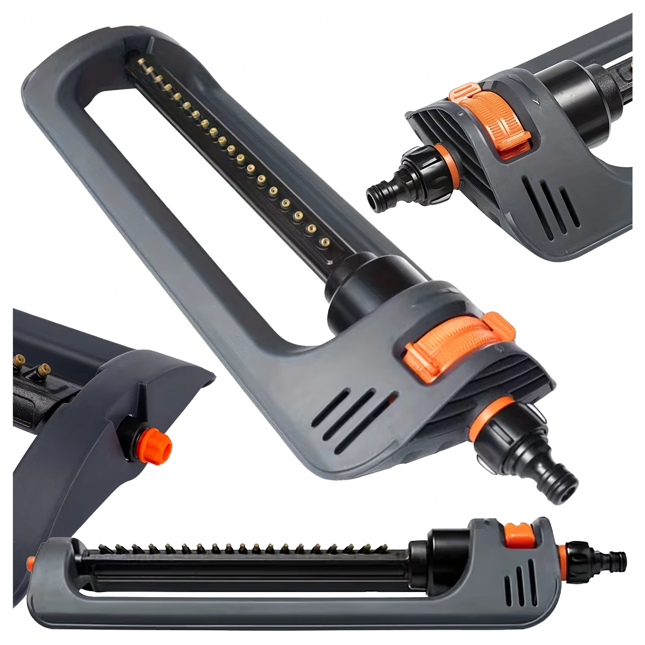 Tento oscilačný zavlažovač je spoľahlivým riešením na pravidelné zavlažovanie trávnikov, okrasných záhonov aj zeleninových záhrad. Vďaka 19 presne rozvrhnutým tryskám rozptyľuje vodu jemne a rovnomerne naprieč obdĺžnikovou plochou, zatiaľ čo nastaviteľný dosah a uhol kmitania vám umožní prispôsobiť pokrytie priestoru aktuálnym potrebám.