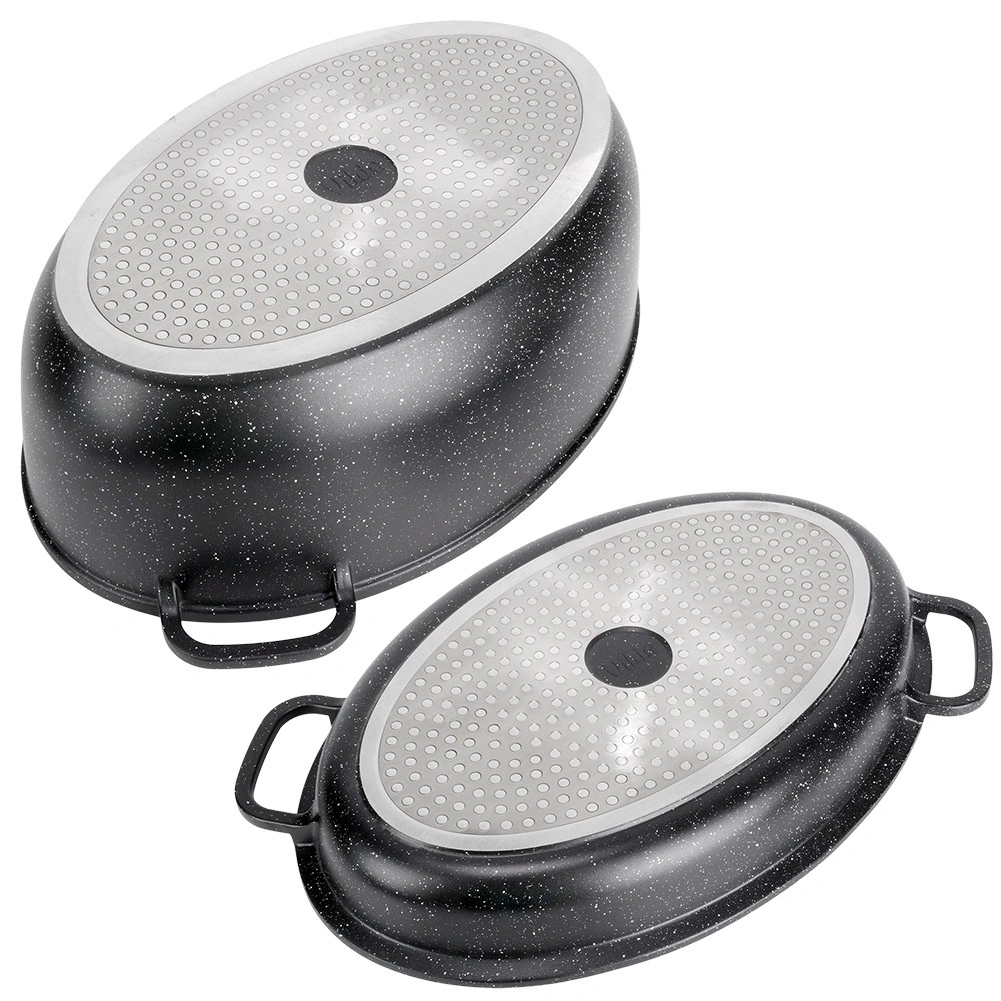 Objavte praktické varenie s pekáčom 3v1 GRANITICA: priestranný oválny pekáč s objemom 8 l, sklenená pokrievka a samostatná panvica–gril s objemom 3,2 l. Vďaka odolnému hliníkovému telu a granitovému nepriľnavému povrchu pripravíte mäso, zeleninu aj zapekané jedlá zdravšie a bez pripaľovania. Sklenené veko s integrovaným dávkovačom umožní dopĺňať víno či vývar počas pečenia bez straty tepla a pary.
