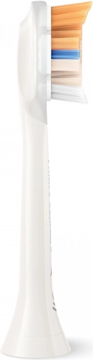 Hlavica Philips Sonicare A3 Premium All‑in‑One kombinuje špičkové čistenie, bielenie a jemnú starostlivosť o ďasná v jednom nástavci. Šikmo strihané a viacúrovňové vlákna prenikajú aj do horšie dostupných miest, zatiaľ čo trojuholníkové vlákna účinne odstraňujú povrchové škvrny. Sonická technológia vytvára dynamický prúd tekutiny pre dôkladné čistenie pozdĺž línie ďasien a medzi zubami.