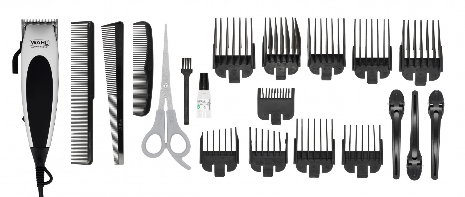 V balení nájdete kompletnú sadu príslušenstva vrátane hrebeňových nadstavcov pre rôzne dĺžky, nožníc, hrebeňa, oleja a kefky na údržbu. Sieťová prevádzka zabezpečuje stály výkon bez prerušenia, takže sa môžete sústrediť na dokonalý účes kedykoľvek potrebujete.