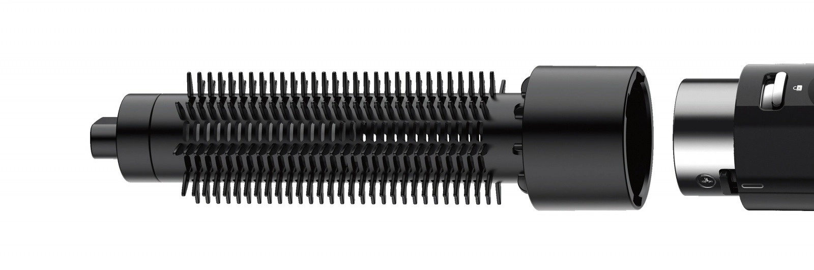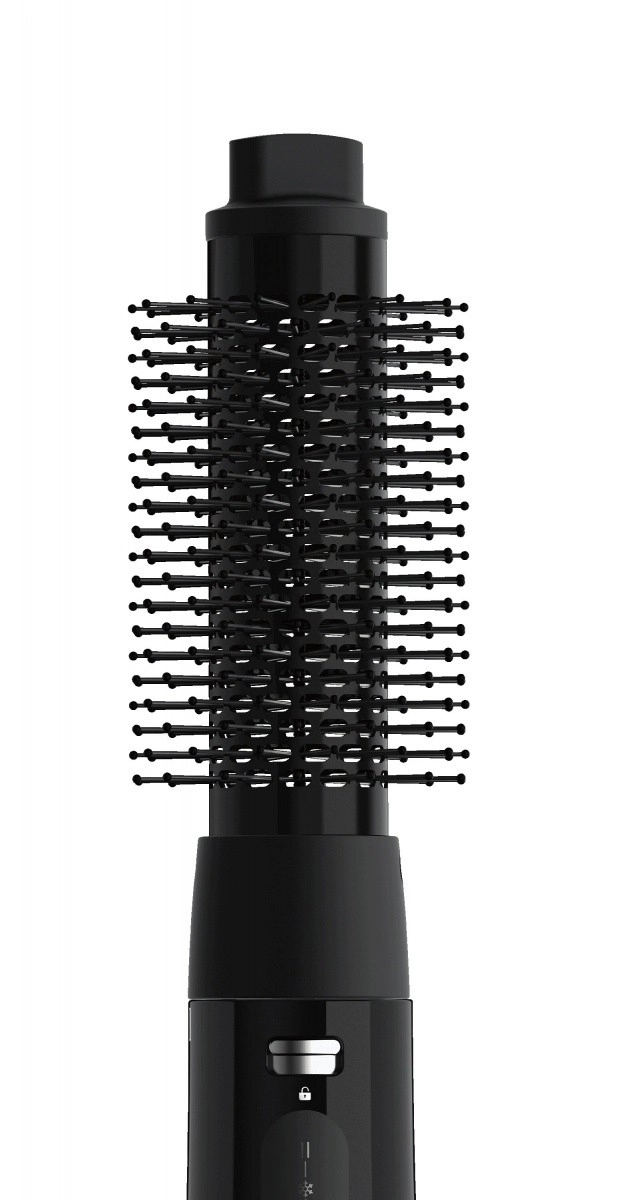 Odnímateľný nástavec s hustými štetinami pomáha vytvárať podtočené aj nadtočené konce a prirodzený objem bez krepovatenia.