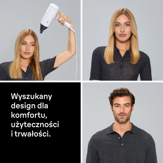 Súčasťou je aj praktický difúzor pre nadýchaný objem a definované vlny. Ergonomická, protišmyková rukoväť a intuitívne ovládacie prvky spríjemnia používanie, zatiaľ čo funkcia studeného vzduchu účes zafixuje a dodá mu lesk.