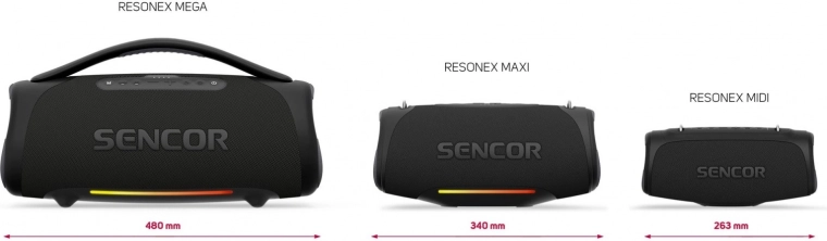 RESONEX MAXI je navrhnutý pre tých, ktorí požadujú vyváženú kombináciu sily a prenosnosti. Výstupný výkon 100 W v spojení so štyrmi meničmi a dvojicou pasívnych radiátorov prináša hutné basy, čisté stredy a iskriace výšky – ideálne na terasu, víkendový výlet aj menšiu vonkajšiu párty. Kryt s textilným povrchom a decentné LED efekty podčiarkujú štýl, nech hrá kdekoľvek.