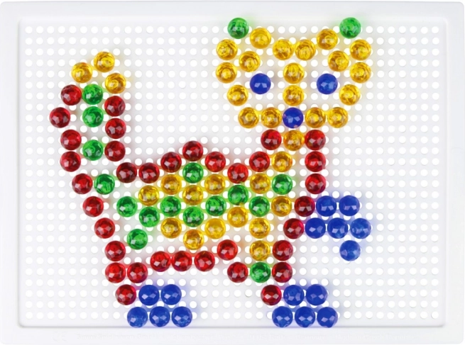 Táto kryštálová mozaika je ideálnou voľbou pre prvé kreatívne tvorenie. Vďaka priehľadným farebným klobúčikom vznikajú na bielej podložke výrazné a hravé obrázky. Deti si precvičia trpezlivosť, koordináciu oko–ruka a naučia sa rozpoznávať farby aj tvary.