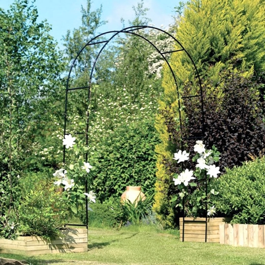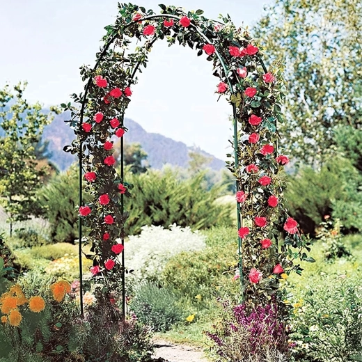 Elegantný záhradný oblúk z odolného kovu vytvorí pôsobivý vstup do záhrady a poskytne pevnú oporu pre ruže, vinič či plamienok. Jednoduchá montáž z rúrkových dielov a univerzálny dizajn pre dekorácie, svadobné brány aj popínavé kvety.