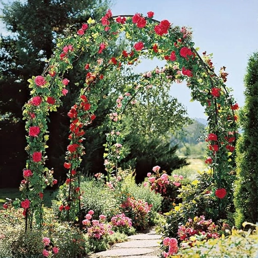 - Estetický efekt: vytvorí prirodzený zelený portál alebo svadobnú bránu