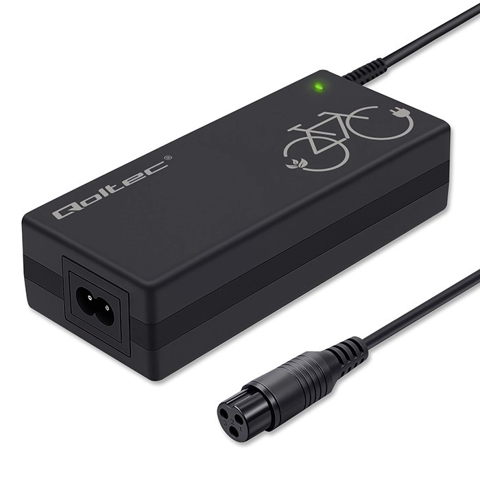 Nabíjačka Qoltec je navrhnutá na efektívne a šetrné nabíjanie Li‑ion batérií elektrobicyklov 36 V. Vďaka inteligentnej elektronike zabezpečuje stabilné napätie 42 V, nabíjací prúd 2 A a chráni akumulátor pred prebitím, prehriatím a skratom. LED indikácia uľahčuje kontrolu: červená = nabíjanie, zelená = plne nabité.