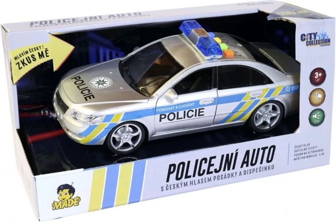 Policajné auto je poháňané 3 batériami typu AG13, ktoré možno ľahko vymeniť. Hračka je dodávaná v slovenskom balení o rozmeroch 29 x 12 x 14 cm, čo z nej robí skvelý darček.
