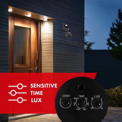 Praktický PIR snímač pohybu a súmraku na automatické ovládanie osvetlenia v interiéri aj exteriéri. Ponúka záber 180°, nastaviteľný dosah 5–12 m, otočnú hlavicu na presné nasmerovanie a krytie IP44 pre odolnosť voči striekajúcej vode. Elegantné, nenápadné prevedenie skvelo zapadne do rôznych typov inštalácií.