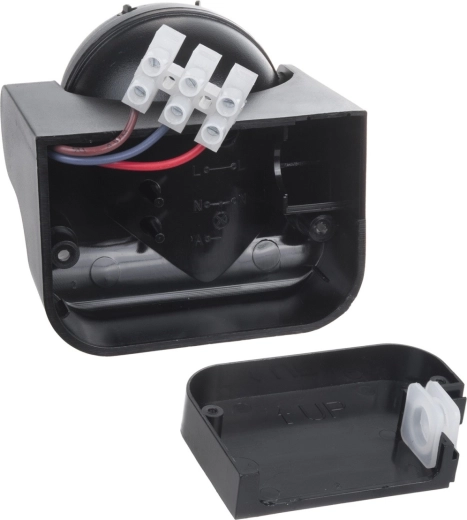 Senzor sníma pohyb v uhle 180° a až do vzdialenosti 12 metrov, takže spoľahlivo pokryje vchody, chodby a nájazdové zóny.