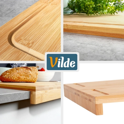 Bambusová doska s rantlom kombinuje stabilitu, hygienu a všestrannosť. Rantl (hrana) pod uhlom 90° sa oprie o kuchynskú linku a zabráni kĺzaniu dosky pri práci. Veľkorysá plocha 45 × 35 cm je ideálna na krájanie zeleniny, mäsa aj pečiva a zároveň skvele poslúži ako pracovná doska na prípravu cesta a domácich dobrôt.