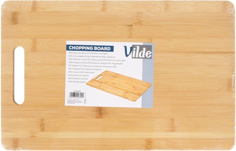Vyrobené z kvalitného bambusového dreva s prirodzenou odolnosťou voči vlhkosti a deformáciám. Povrch je šetrný k ostriu nožov.