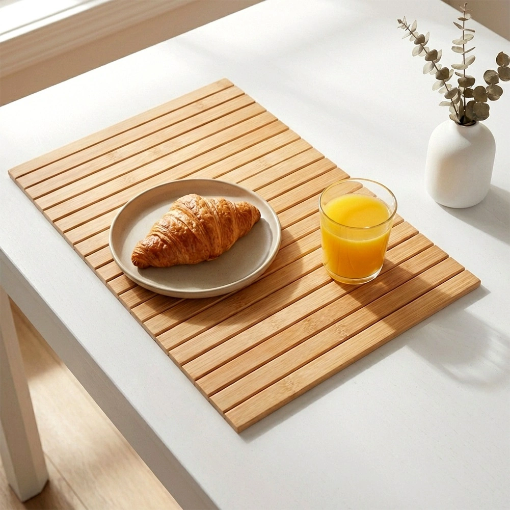 Bambus je tvrdý, pevný a ľahko sa udržiava. Podložka chráni pred teplom, vlhkosťou aj poškriabaním a zároveň vyzerá elegantne.