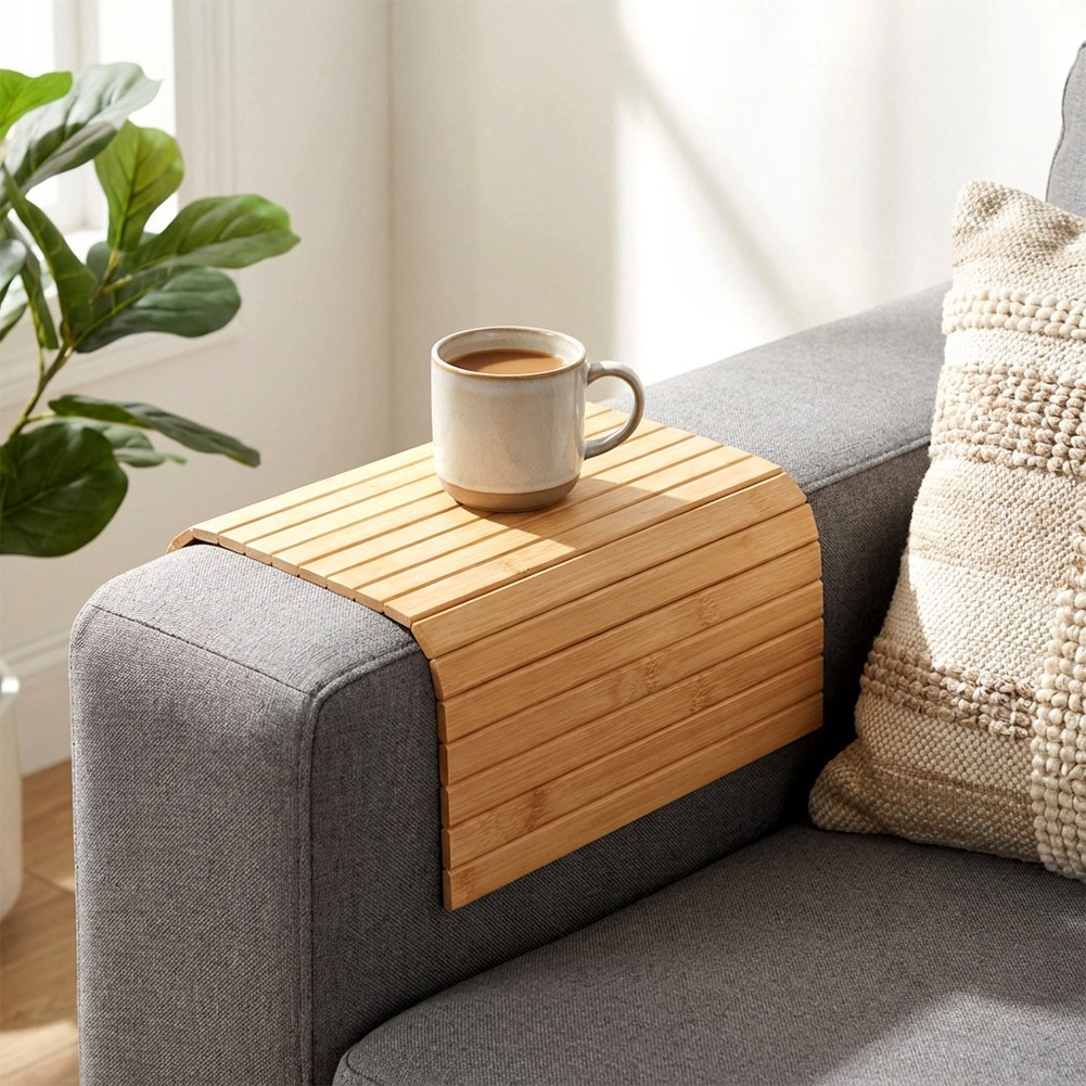 Lamely sa prispôsobia tvaru podrúčky a vytvoria rovný povrch pre hrnček, pohár alebo drobnosti – praktické riešenie bez bočného stolíka.
