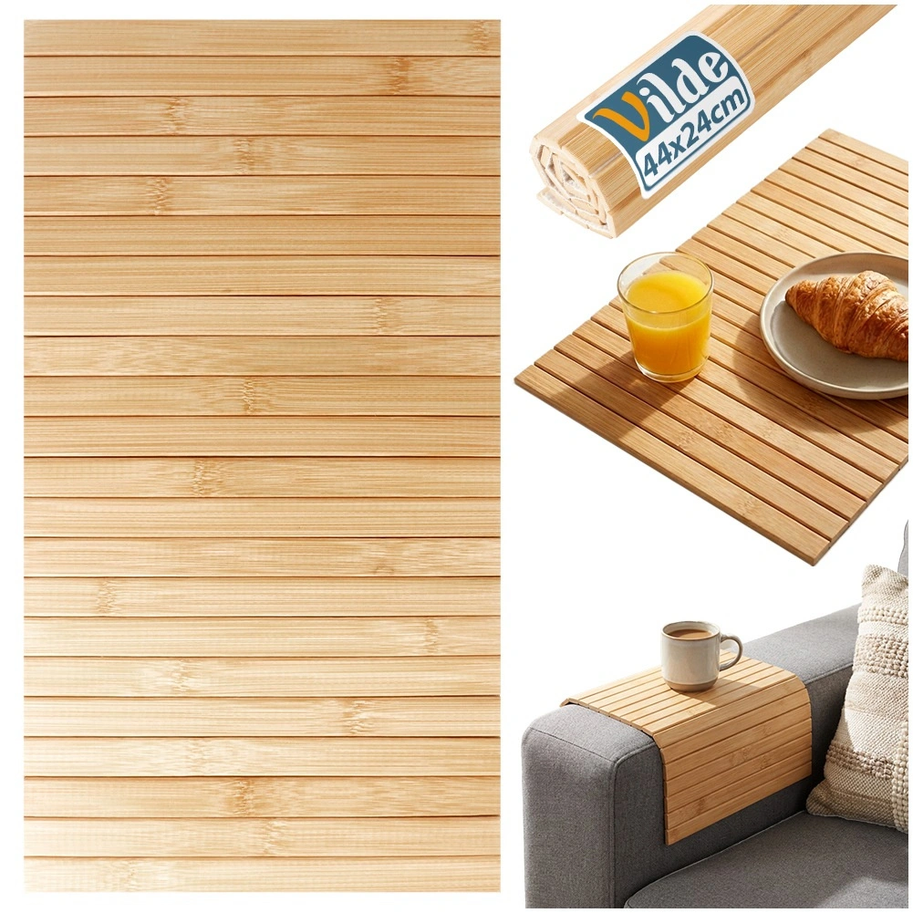 Praktická bambusová podložka chráni stôl aj ďalšie povrchy pri jedle aj každodennom používaní. Vďaka rolovacej konštrukcii ju ľahko uložíte do zásuvky, má prírodný vzhľad a je odolná voči bežnému opotrebovaniu. Možno ju využiť aj ako stolík na opierku pohovky na hrnček či drobnosti.