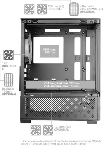 Štýlová a funkčná microATX skrinka MARS MC-SE2 spája moderný dizajn s výborným chladením. Ponúka bezrámové tvrdené sklo na čele aj boku, zadný 120mm FRGB ventilátor, dvojkomorovú konštrukciu s podporou vodného chladenia a Airflow Mesh pre optimalizovaný prietok vzduchu počas herných maratónov.
