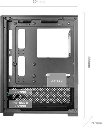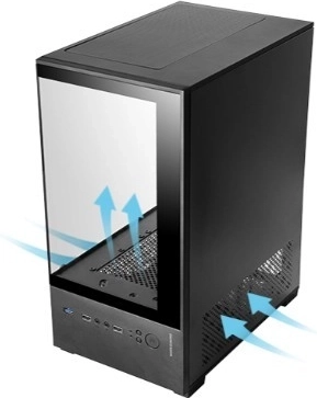 MARS MC-SE2 je kompaktný herný Mini Tower, ktorý premení vašu zostavu na atraktívny výstavný kúsok. Vďaka neprerušovaným panelom z tvrdeného skla vynikne váš hardvér aj osvetlenie, zatiaľ čo precízne navrhnuté prúdenie vzduchu udržuje komponenty v ideálnej teplote.