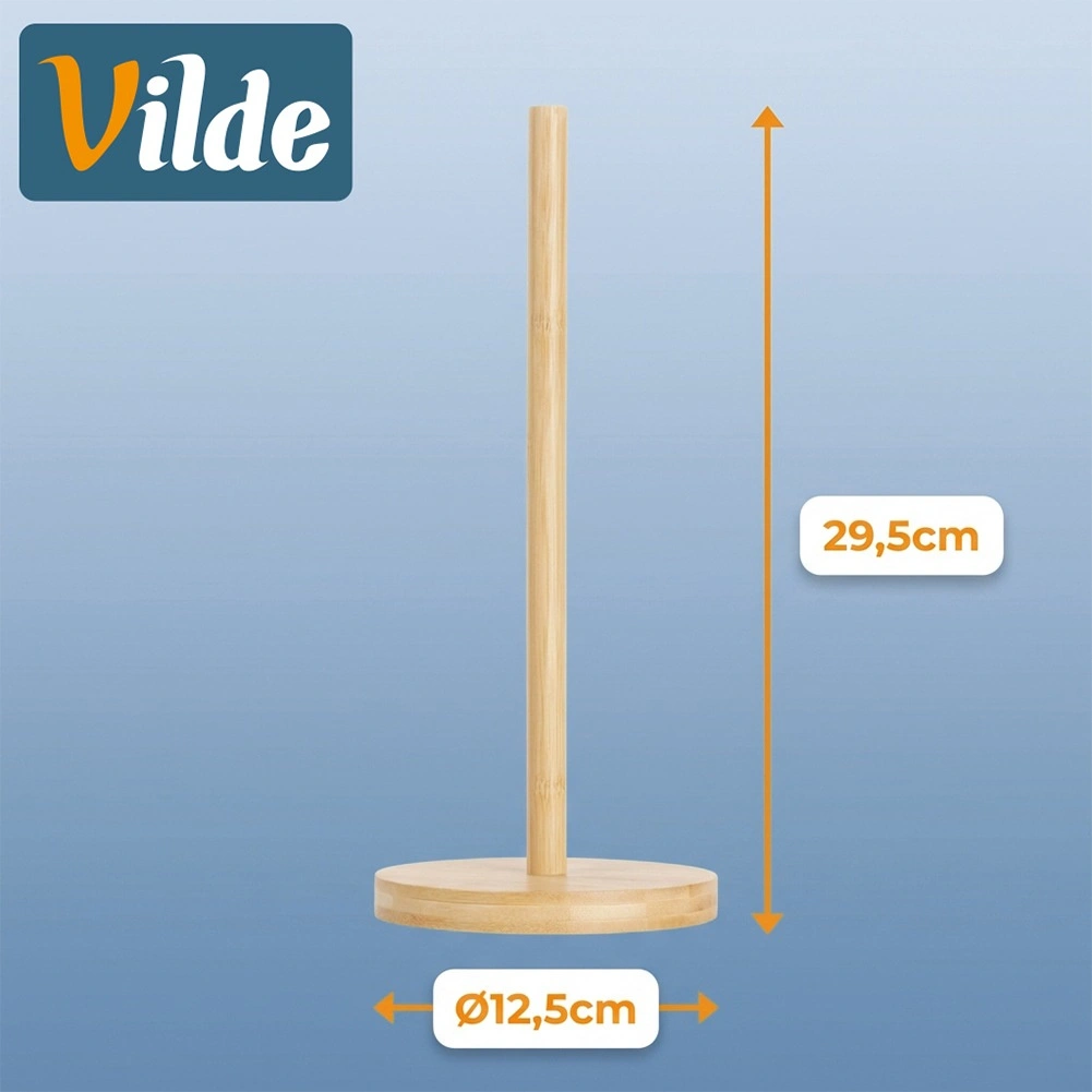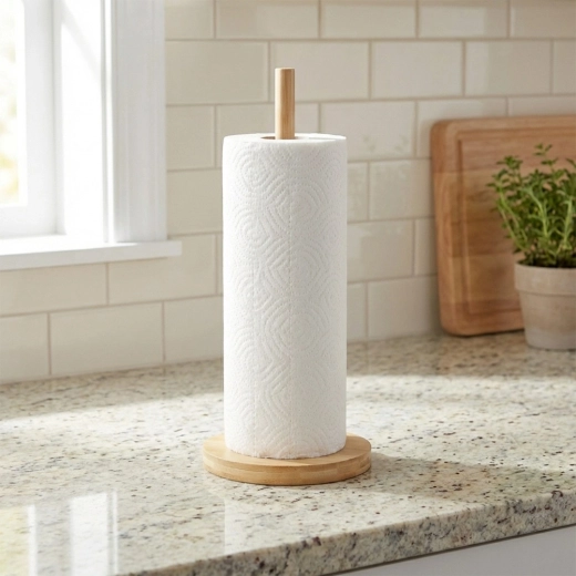 Praktický bambusový stojan na papierové utierky s rozmermi 12,5 × 12,5 × 29,5 cm zaistí, že budete mať utierky vždy po ruke. Stabilná okrúhla základňa, ekologický bambus a ľahké odtrhávanie hárkov uľahčia varenie, upratovanie aj každodennú prevádzku kuchyne.