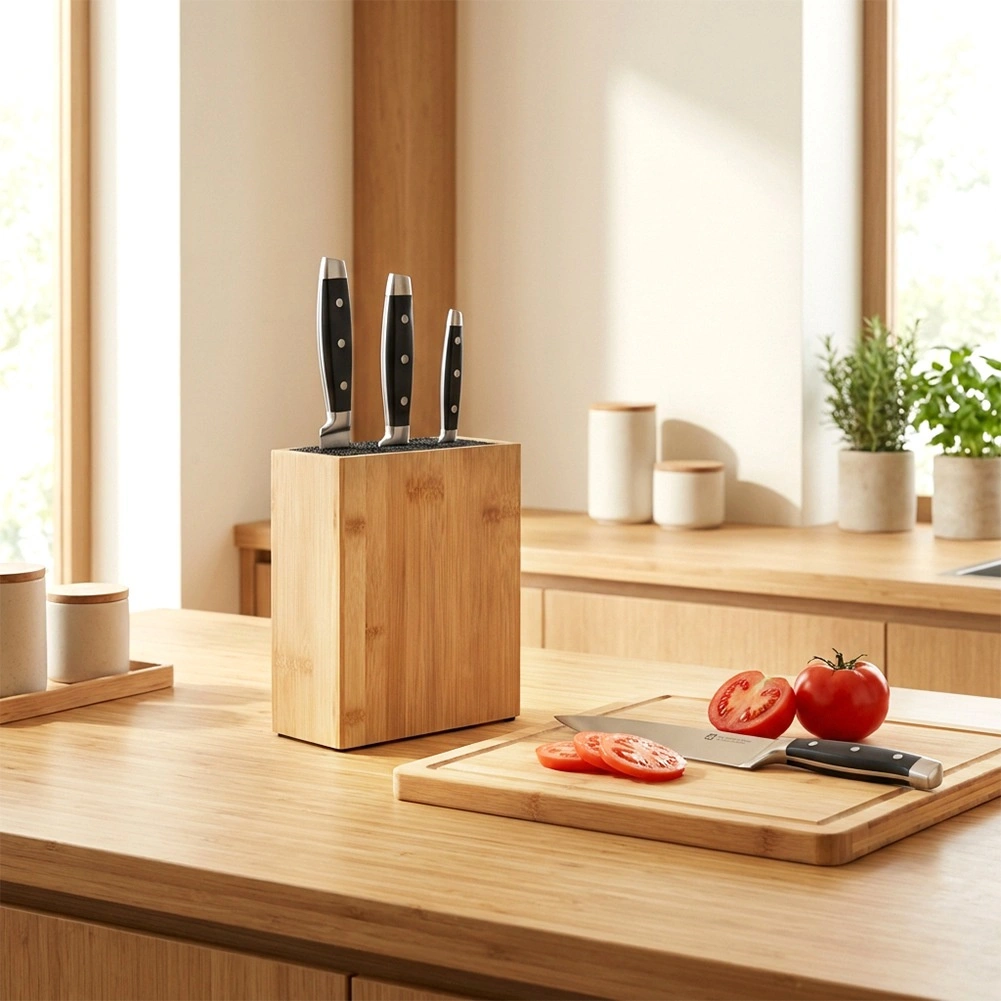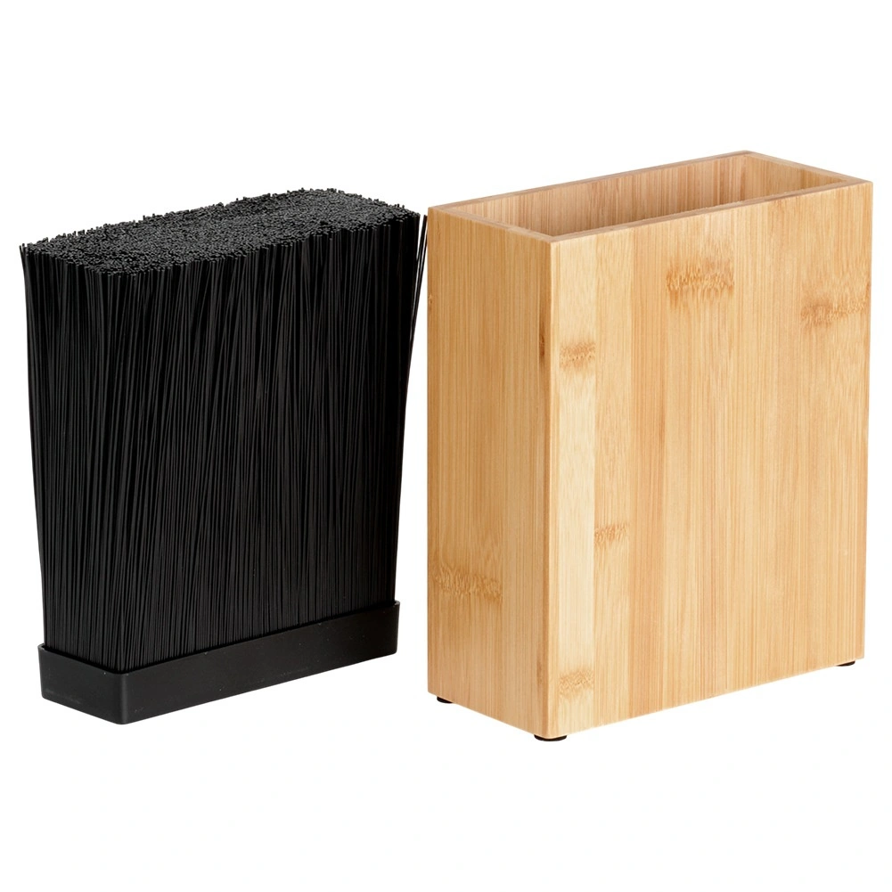 Štýlový a praktický blok na nože z prírodného bambusu udrží vaše kuchynské náradie vždy poruke. Univerzálna bristolová (štetinová) vložka sa prispôsobí tvaru aj šírke čepele a chráni ostrie pred otupením. Moderný, no nadčasový dizajn sa hodí do každej kuchyne.