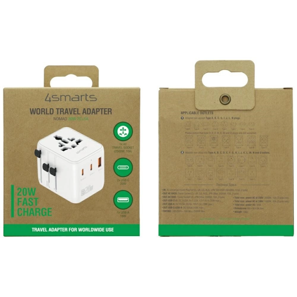 4smarts NOMAD 20W je ideálny spoločník na služobné aj súkromné cesty. V jednom tele spája globálnu redukciu do zásuviek a viacportovú rýchlu nabíjačku, takže zvládne napájať drobnú elektroniku cez USB aj zariadenia z klasickej siete. Kompaktné biele prevedenie sa zmestí do každej tašky a vďaka technológii GaN je adaptér menší, efektívnejší a chladnejší.