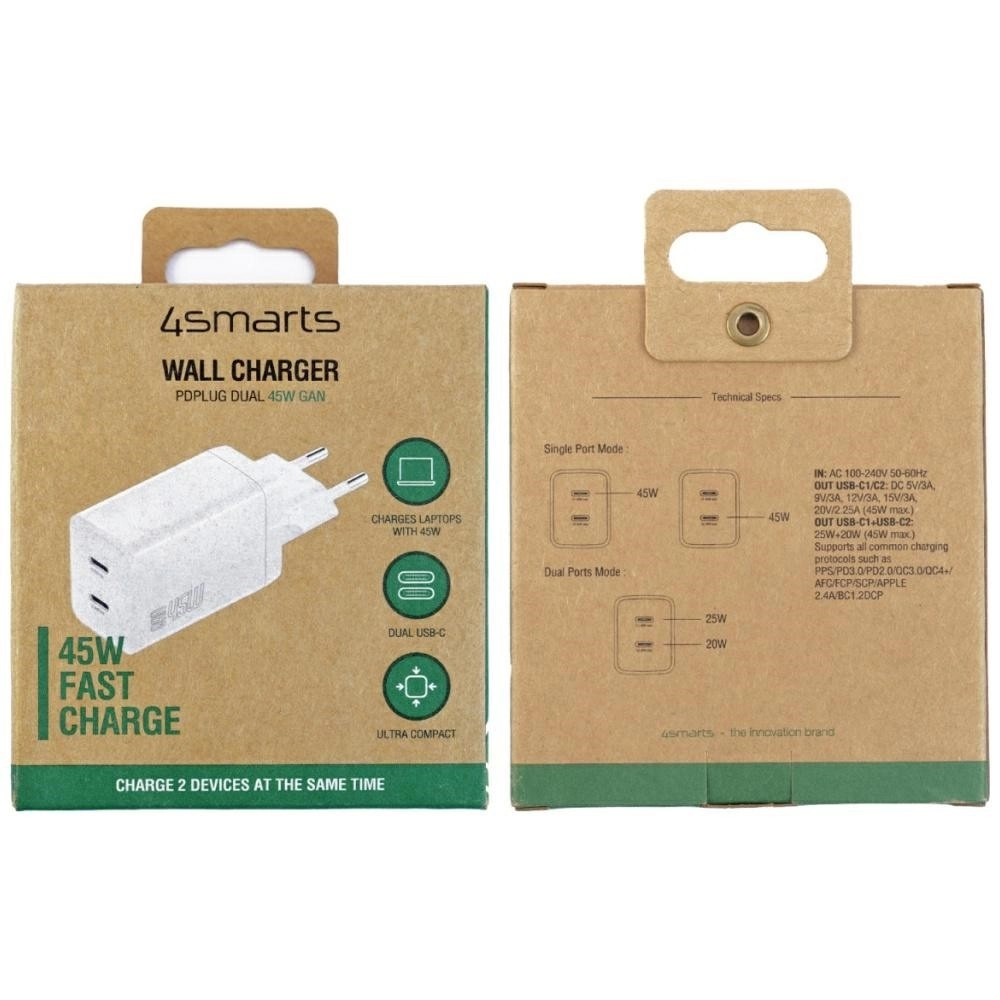 Moderný GaN zmenšuje rozmery, znižuje zahrievanie a zvyšuje účinnosť. Získate 45 W výkon v ľahkej a skladnej nabíjačke s EU zástrčkou.
