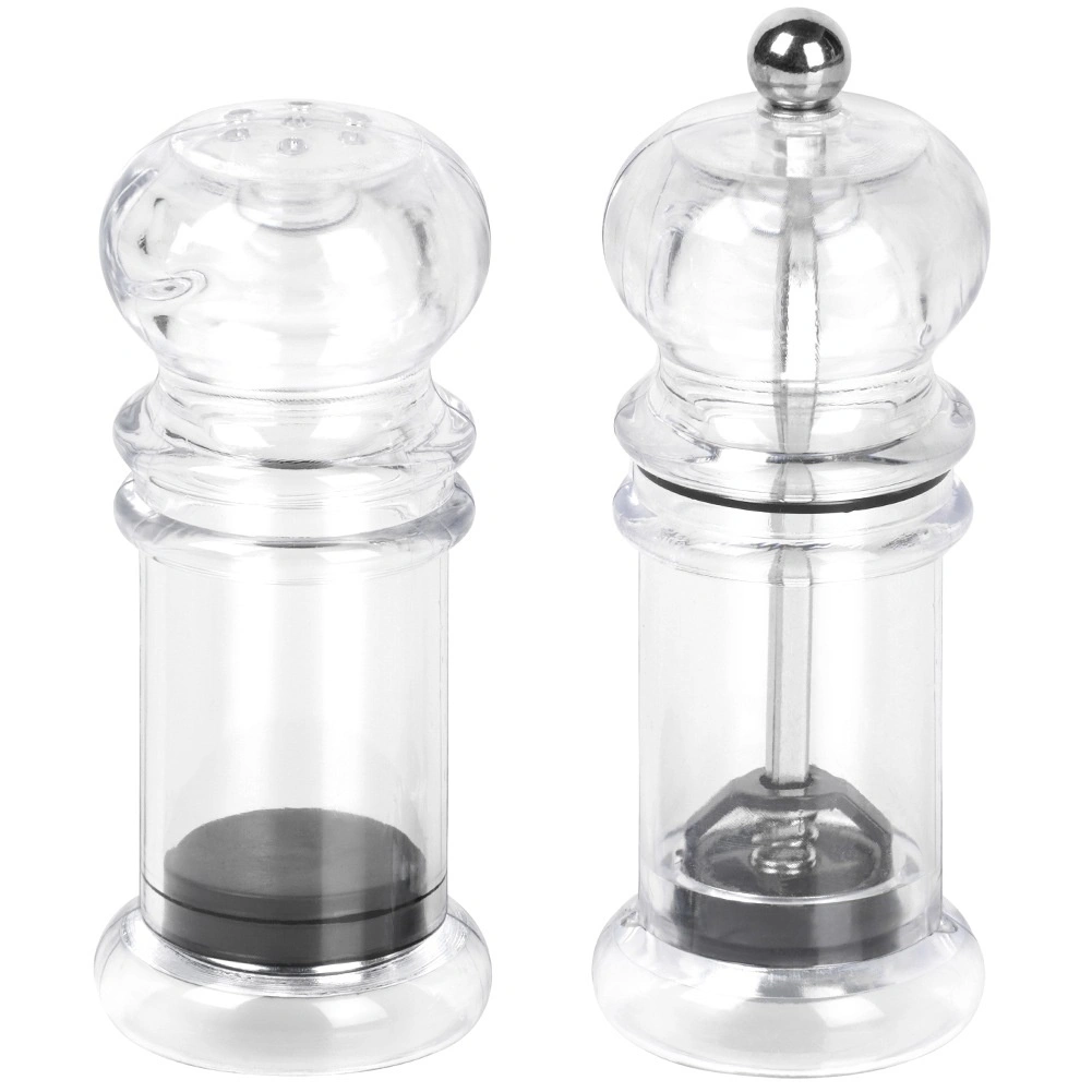 Táto elegantná sada kombinuje odolný akryl s keramickým mlecím mechanizmom pre plynulé mletie aj tvrdších zrniek korenia. Transparentné prevedenie umožňuje okamžitú kontrolu obsahu a hladiny. Vďaka nadčasovému vzhľadu budú mlynček a soľnička vynikať na jedálenskom stole aj v profesionálnej prevádzke.