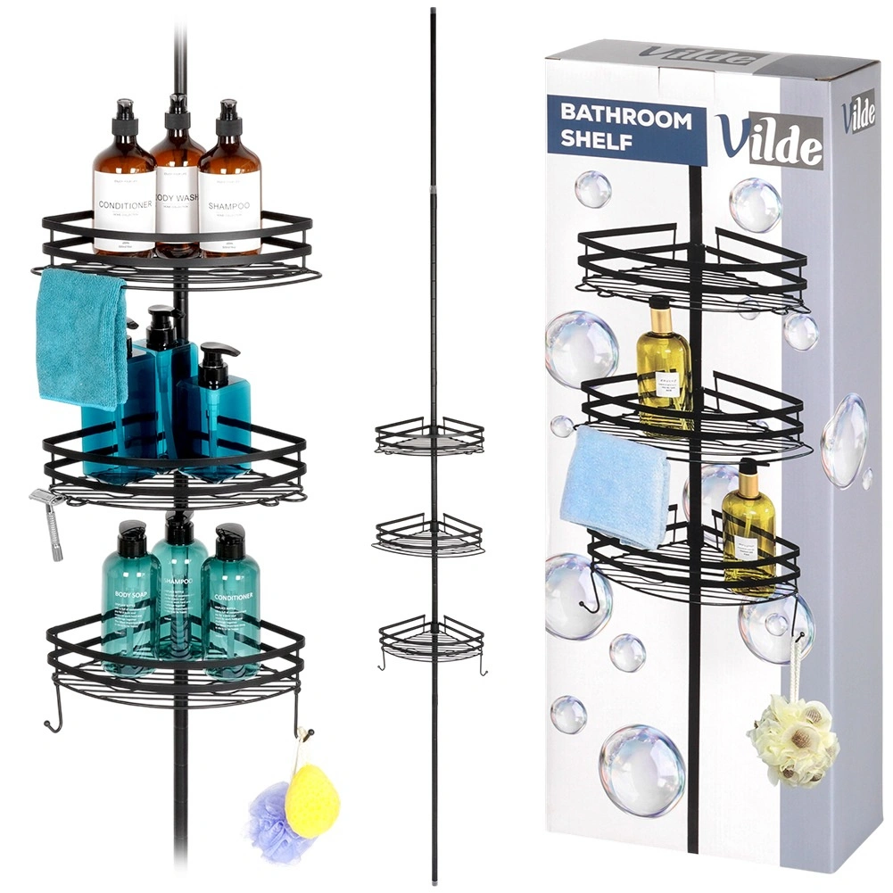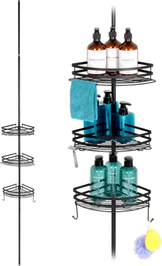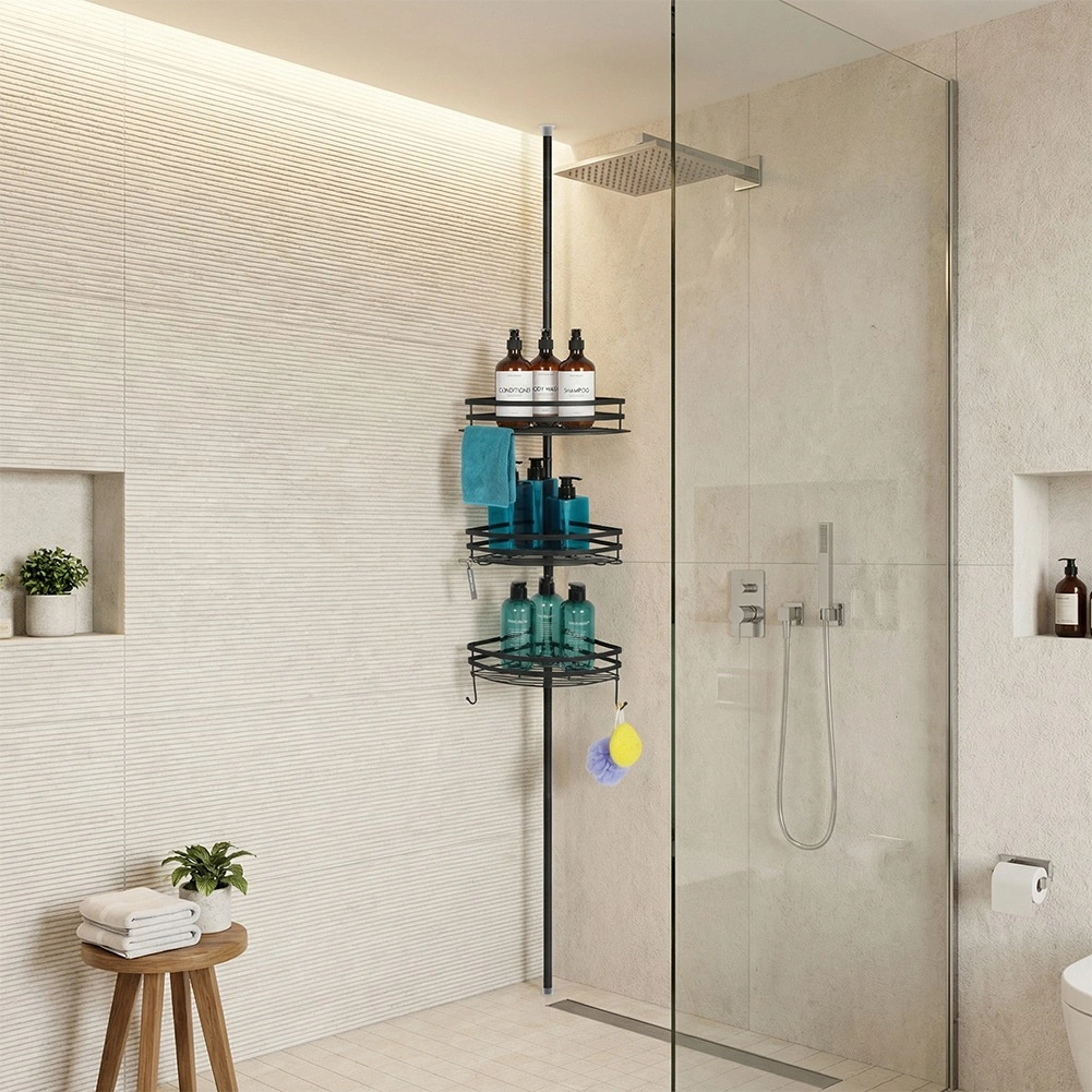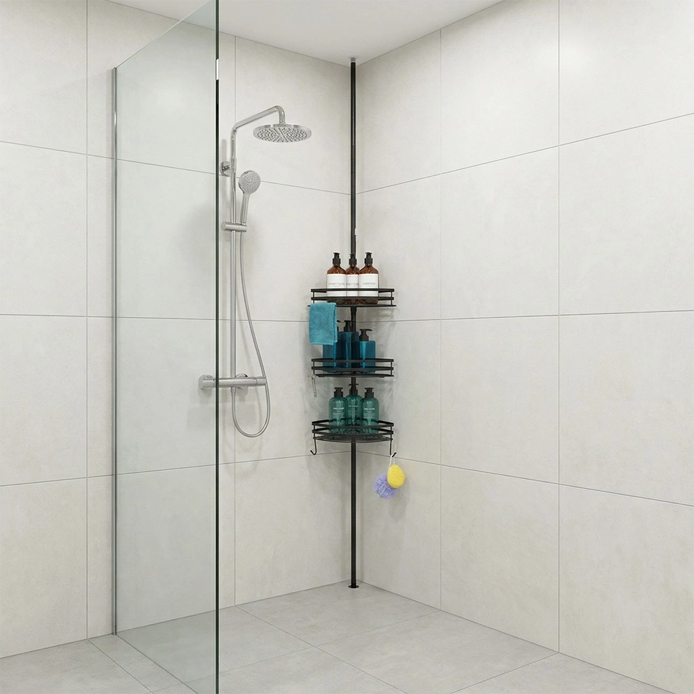 Usporiadajte si kúpeľňu štýlovo a funkčne. Táto rohová sprchová polica s teleskopickou tyčou sa montuje bez vŕtania – stačí ju rozpierať medzi podlahu a strop. Regulovateľná výška umožní presne prispôsobiť umiestnenie políc vašej sprche či kúpeľni, zatiaľ čo matné čierne kovové prevedenie dodá moderný vzhľad a dlhú životnosť.