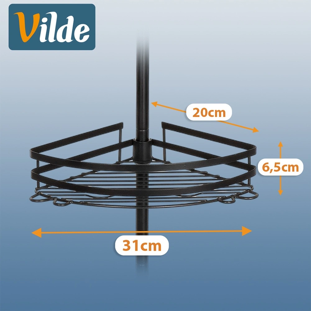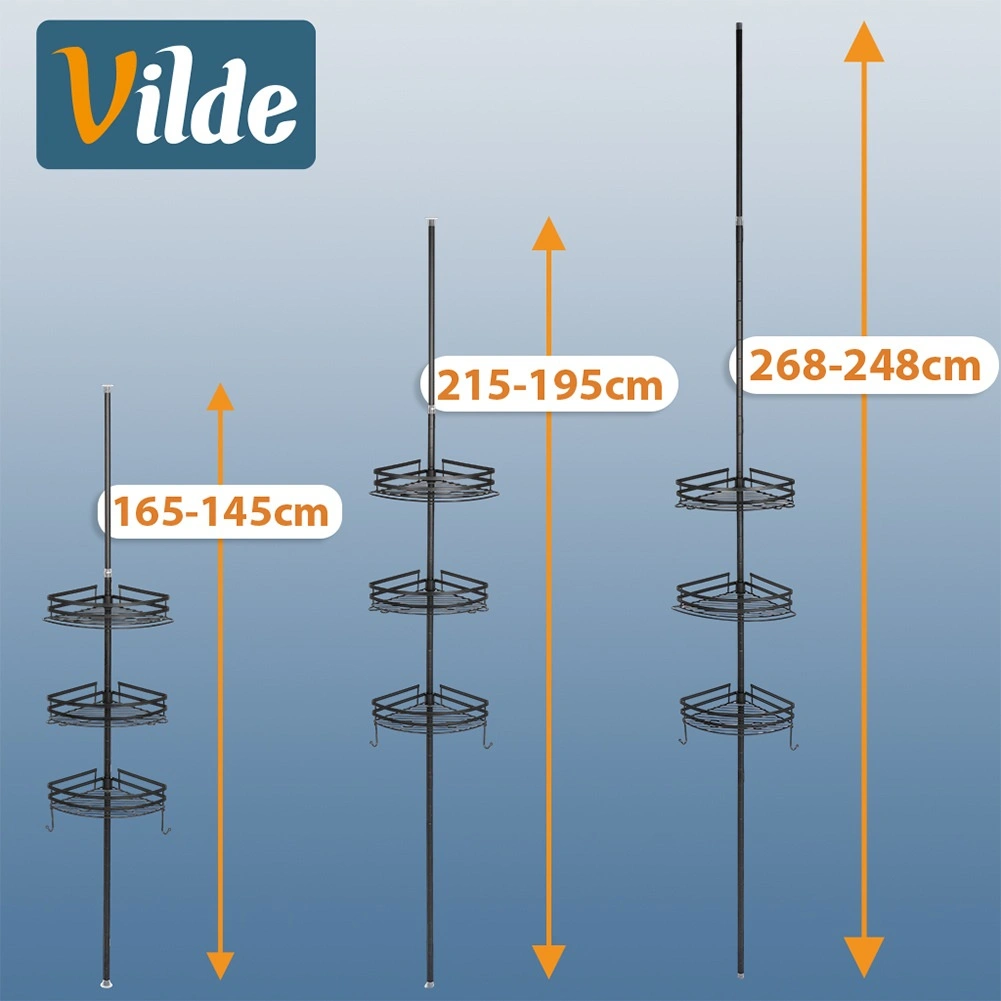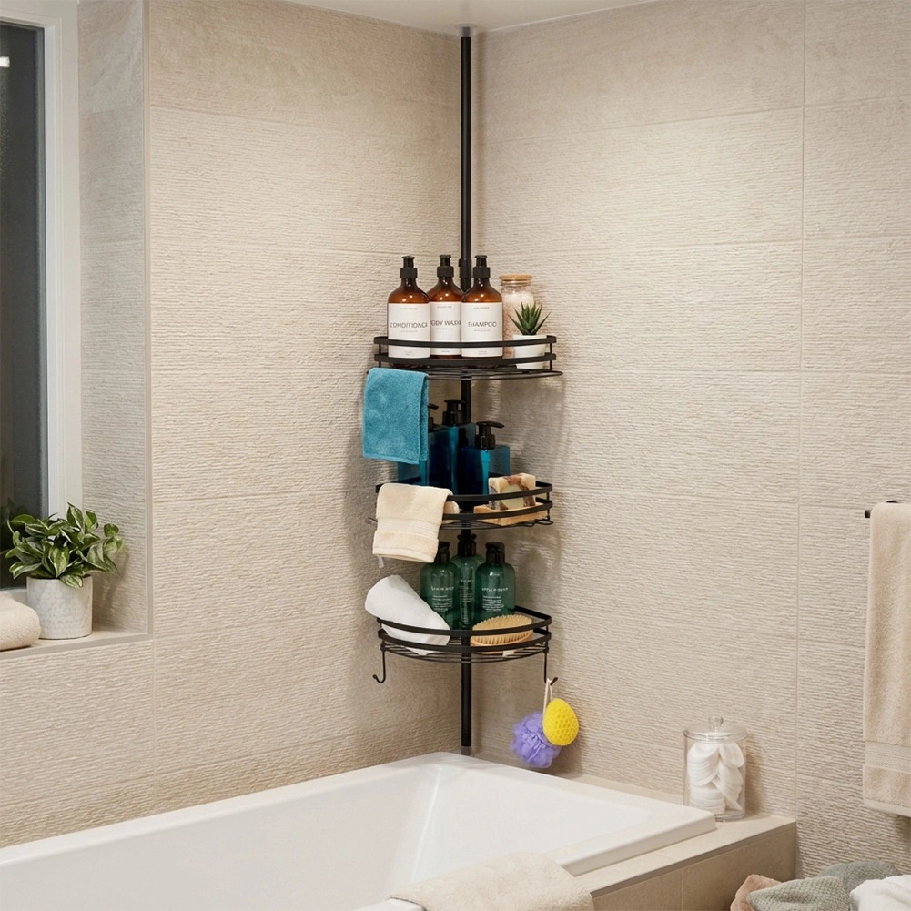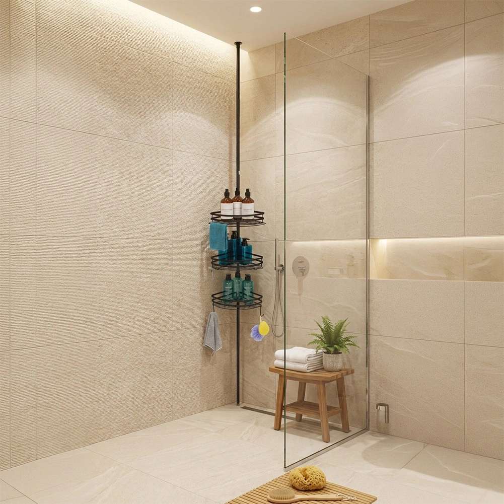 Usporiadajte si kúpeľňu štýlovo a funkčne. Táto rohová sprchová polica s teleskopickou tyčou sa montuje bez vŕtania – stačí ju rozpierať medzi podlahu a strop. Regulovateľná výška umožní presne prispôsobiť umiestnenie políc vašej sprche či kúpeľni, zatiaľ čo matné čierne kovové prevedenie dodá moderný vzhľad a dlhú životnosť.
