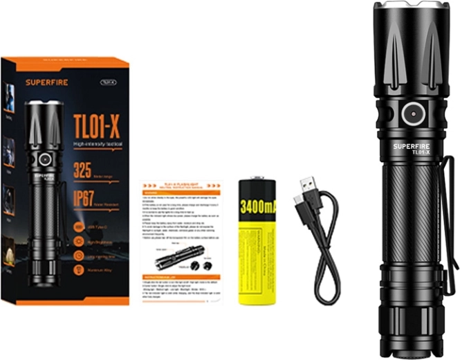 Superfire TL01-X je robustná taktická baterka navrhnutá pre profesionálov aj outdoor nadšencov. Vysoký svetelný výkon 1800 lm a dosvit 325 m zaručujú istotu viditeľnosti v každej situácii, zatiaľ čo odolná konštrukcia z hliníkovej zliatiny s krytím IP67 chráni pred prachom a vodou. Integrované ochrany strážia elektroniku aj batériu, takže sa môžete spoľahnúť na dlhú životnosť a bezpečnú prevádzku.