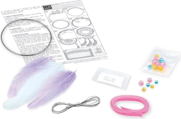Obsahuje všetko, čo potrebujete: kruh, farebné nite, korálky a pierka. Umožňuje jednoduchú tvorbu vášho osobného lapača snov.