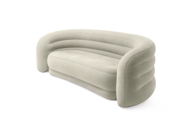 Štýlová nafukovacia pohovka Curve spája moderný dizajn, zamatovo hebký povrch v olivovo béžovej farbe a maximálnu praktickosť. Vďaka ventilu 2v1 ju ľahko nafúknete aj sfúknete behom chvíľky, je ľahká, prenosná a skvele zapadne do obývačky, relax zóny aj na terasu.