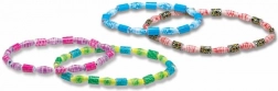 Obsahuje farebné papierové pásky a potrebné materiály na výrobu korálok a náramkov.