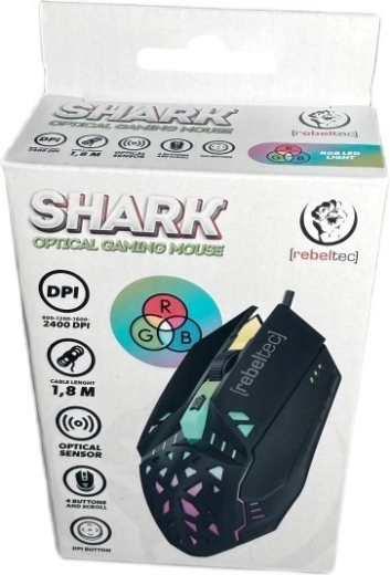 Ultralahká herná myš REBELTEC SHARK prináša rýchlosť, presnosť a RGB podsvietenie pre hráčov, ktorí chcú mať navrch. Vďaka hmotnosti okolo 70 g, optickému senzoru s citlivosťou 800/1200/1600/2400 DPI a presnému koliesku reaguje okamžite na každý pohyb. Teflónové klzáky zabezpečujú hladký sklz a kábel USB 1,8 m stabilné pripojenie bez výpadkov.
