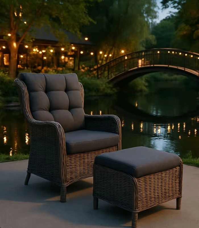 - záhradné kreslo s podnožkou