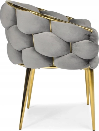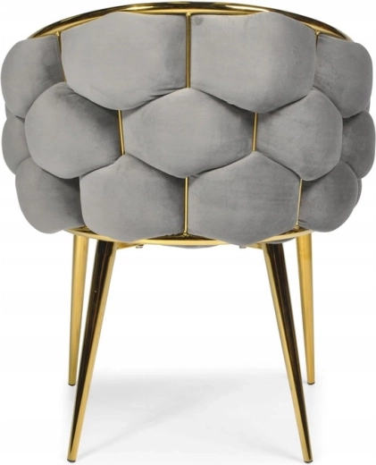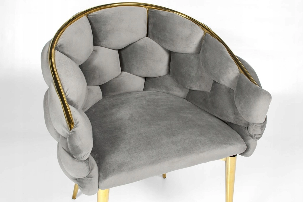 Elegantná stolička FERTONE BALLOON spája luxusný zamat, pohodlné kresielkové tvarovanie a zlaté kovové nohy do štýlového sedáka pre jedáleň, obývačku aj kozmetický stolík. Mäkké polstrovanie, obopínajúce operadlo a univerzálna sivá farba zabezpečia komfort aj ľahké zladenie s moderným interiérom. Nosnosť až 100 kg a jednoduchá údržba na každodenné používanie.