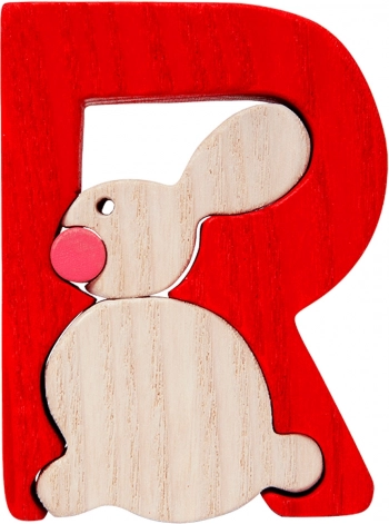 Písmeno R so zajačikom motivuje deti k spoznávaniu písmen a skladaniu slov. Podporuje logické myslenie a jemnú motoriku vďaka intuitívnemu vkladaniu a manipulácii.