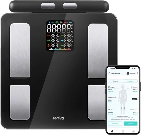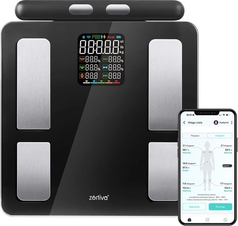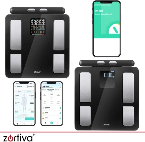 Inteligentná kúpeľňová váha ZORTIVA Smart Premium vám pomôže mať zdravie pod kontrolou každý deň. Vďaka 8 presným elektródam ponúka multifrekvenčnú analýzu BIA, meria telesný tuk, svaly, vodu a kostnú hmotu, vypočíta BMI a ďalšie ukazovatele. Dáta sa automaticky synchronizujú cez Bluetooth a Wi‑Fi do aplikácie iMoni, kde uvidíte prehľadné grafy a trendy. Elegantné sklenené prevedenie, nosnosť 180 kg, presnosť 0,1 kg a podpora až 16 používateľov z nej robia ideálnu váhu pre celú rodinu.