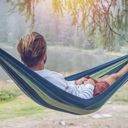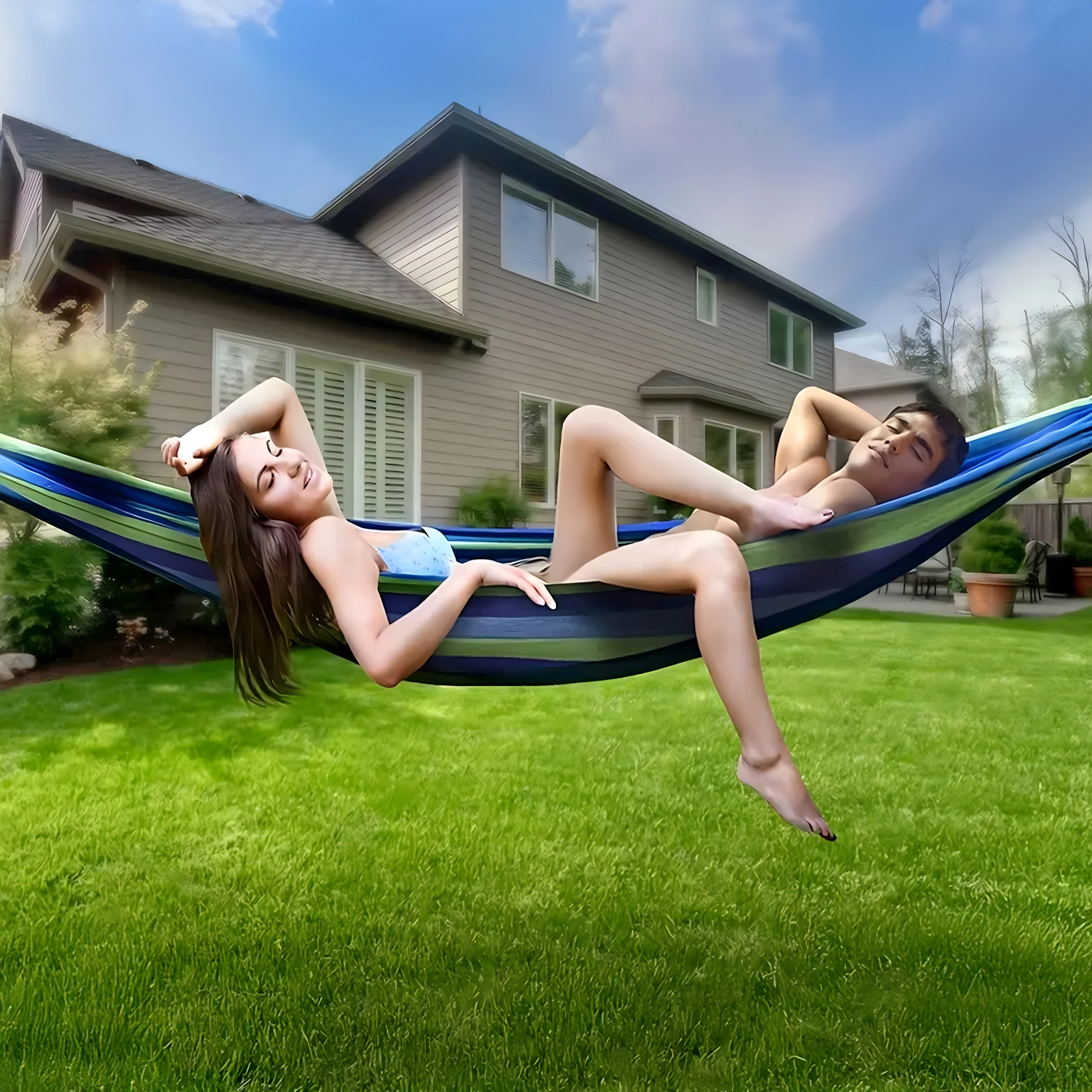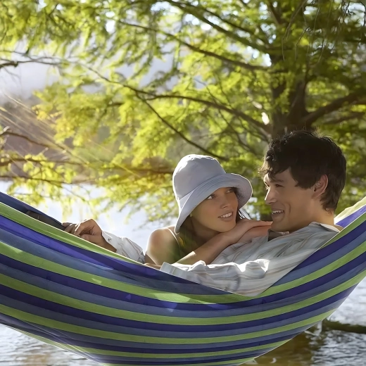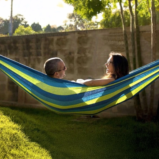 Široké plátno s nosnosťou pre dve dospelé osoby poskytne dostatok miesta na spoločnú relaxáciu v prírode aj na záhrade.