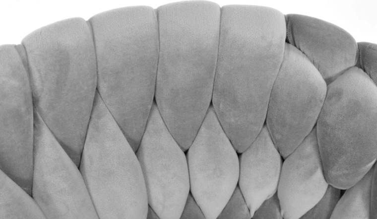 Vytvorte si doma útulné miesto s nádychom luxusu. Sivý zamat s jemným leskom pôsobí prémiovo, príjemne odráža svetlo a v kombinácii s čiernymi nohami vytvára nadčasový, moderný kontrast. Charakteristické pletené čalúnenie operadla dodáva kreslu dizajnový akcent a zároveň príjemnú oporu.